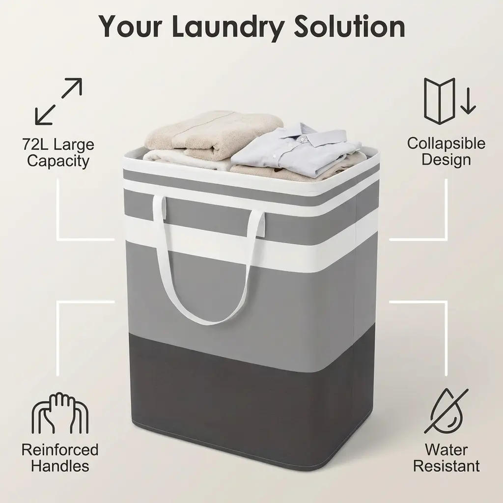 This foldable laundry basket has a capacity of 75 liters (19.8 gallons), perfect for filling it once with clothes, towels, bedding, or children's toys. It can store dirty clothes for a week at once, reducing the number of times you need to go to the laundry room. The gradient gray design added a touch of style to any space.