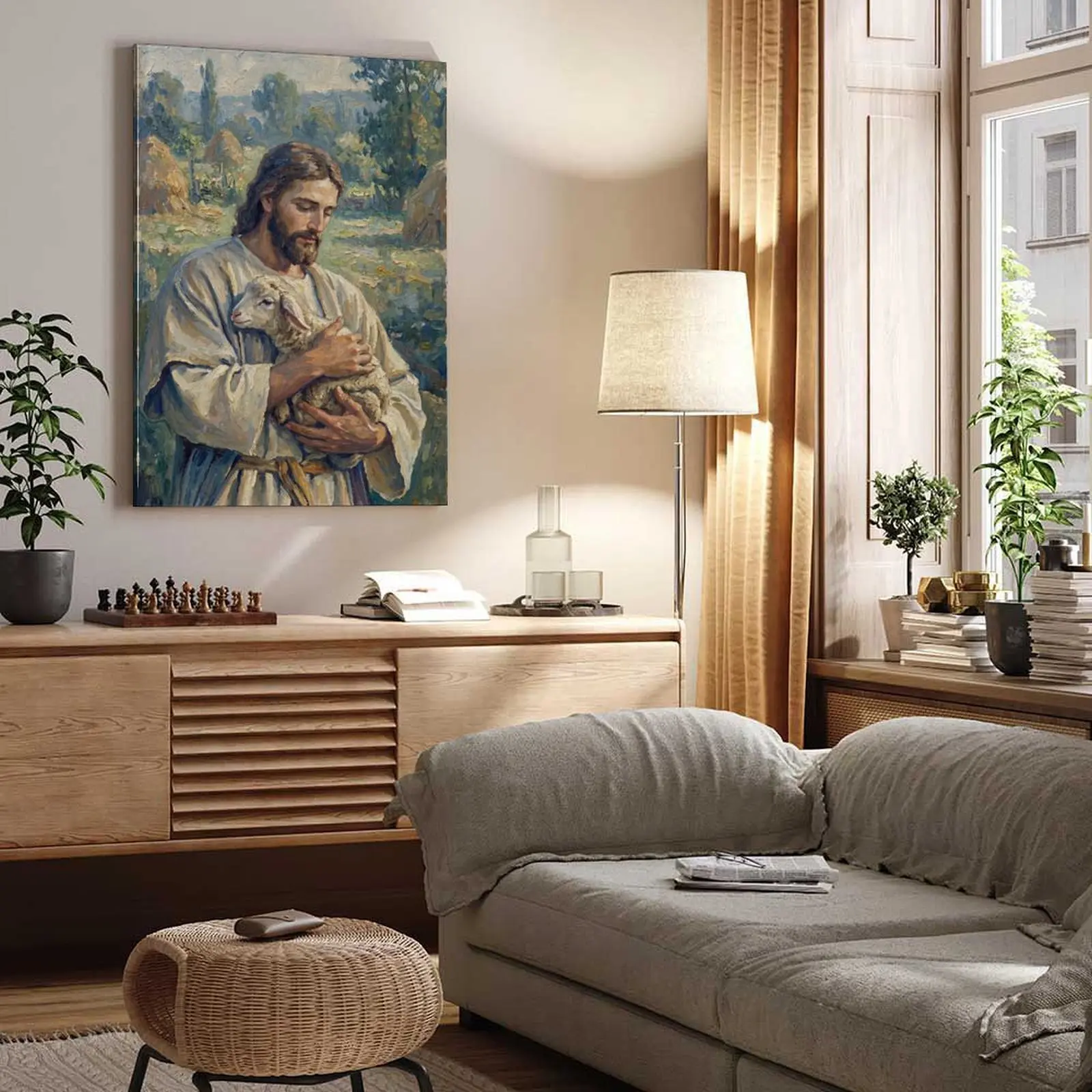 🙏 This canvas print is a significant piece for Christian homes. It beautifully captures the essence of faith and love. Display it to inspire and remind yourself and others of the profound message it conveys.