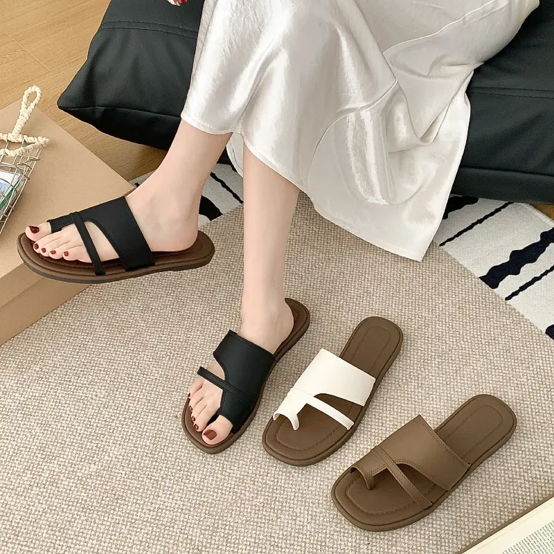 Toe Sandals for Women Summer Fashion Roman Style Simple Retro One-Strap Slippers Home Non-Slip Outdoor Versatile Sandals