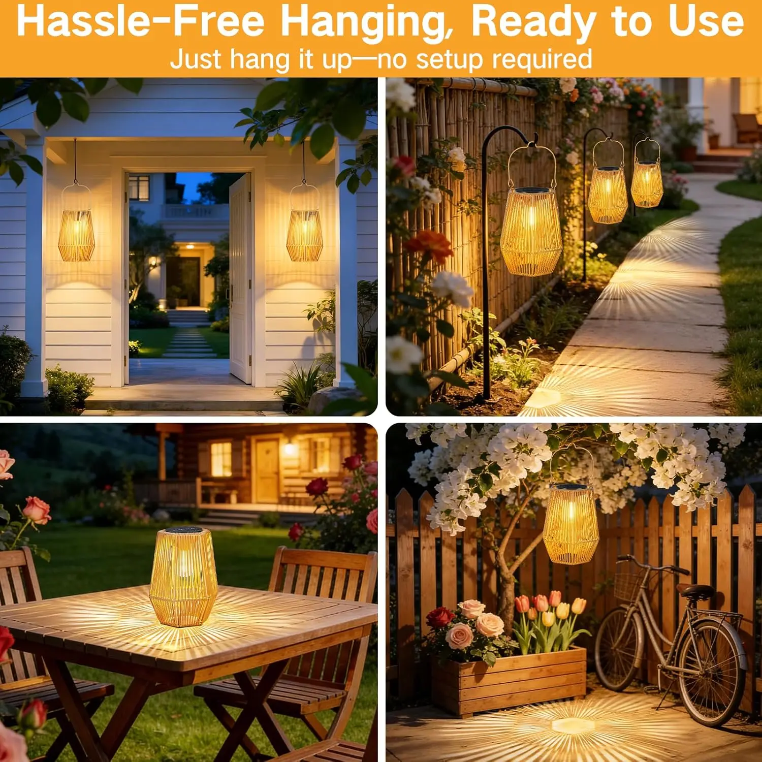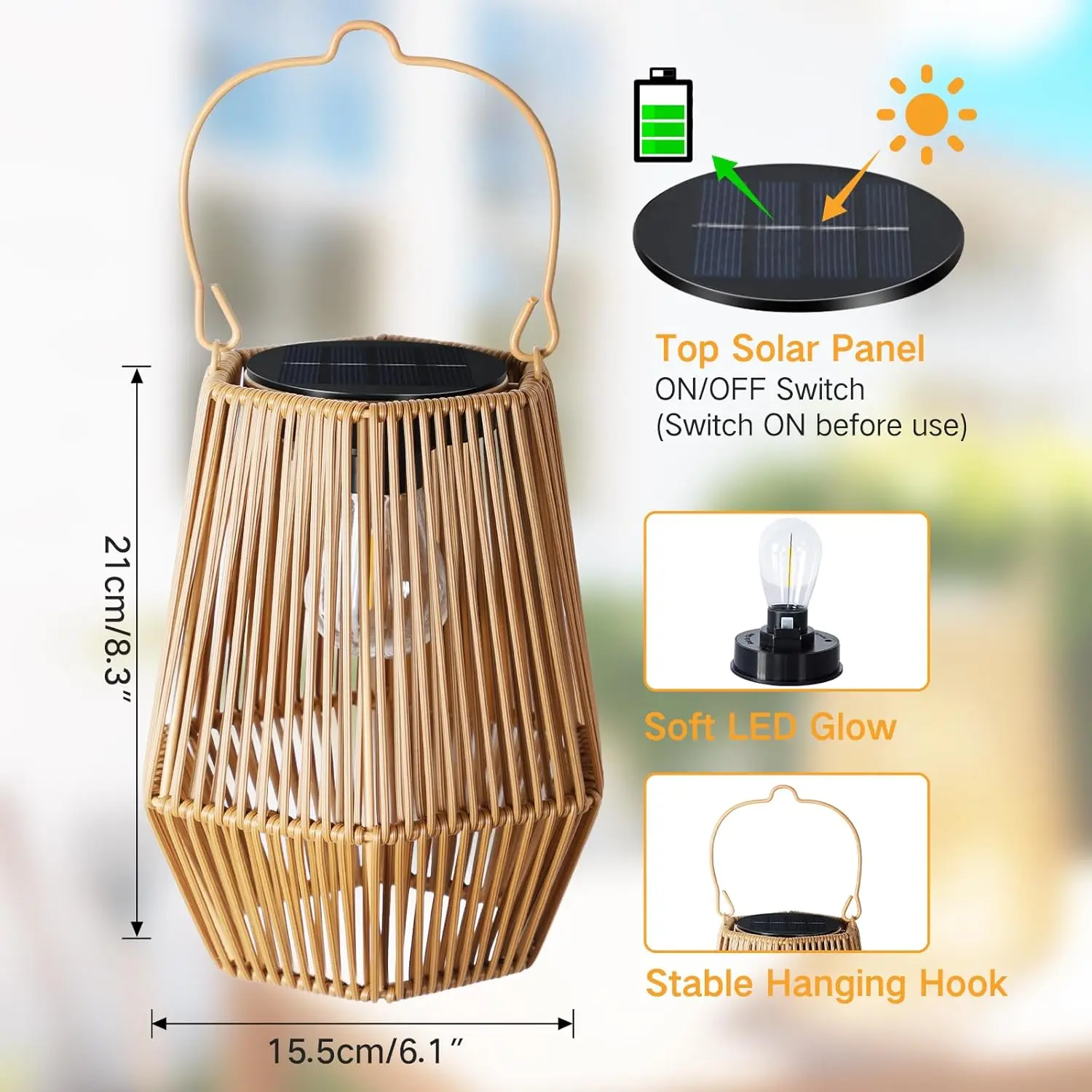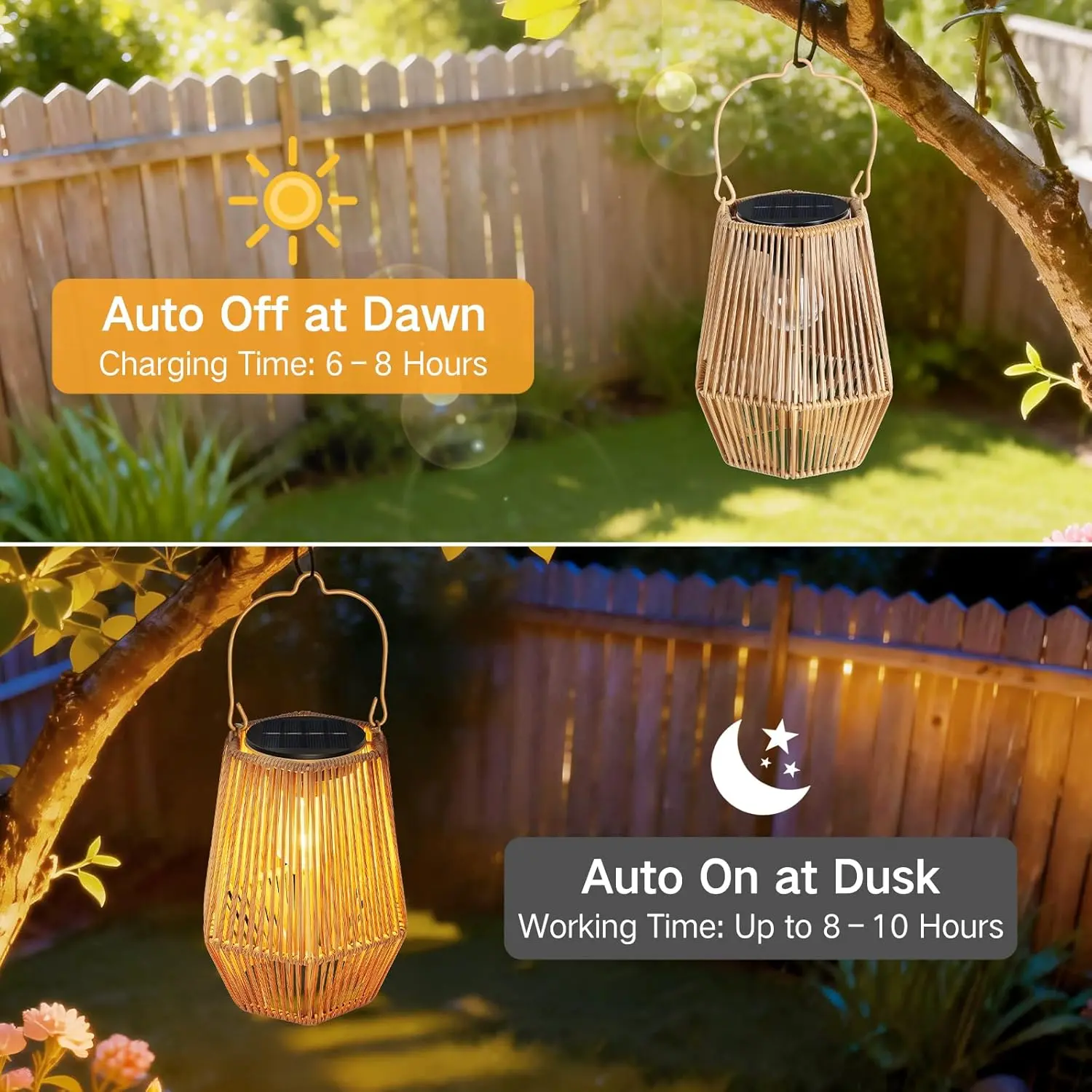 2 Pack Solar Lanterns Outdoor Waterproof, Hanging Rattan Woven Solar Lights with Auto On/Off, Decorative Gifts for Garden, Yard, Patio, Tree, Porch, Lawn, Pathway & Outside Tabletop Decor