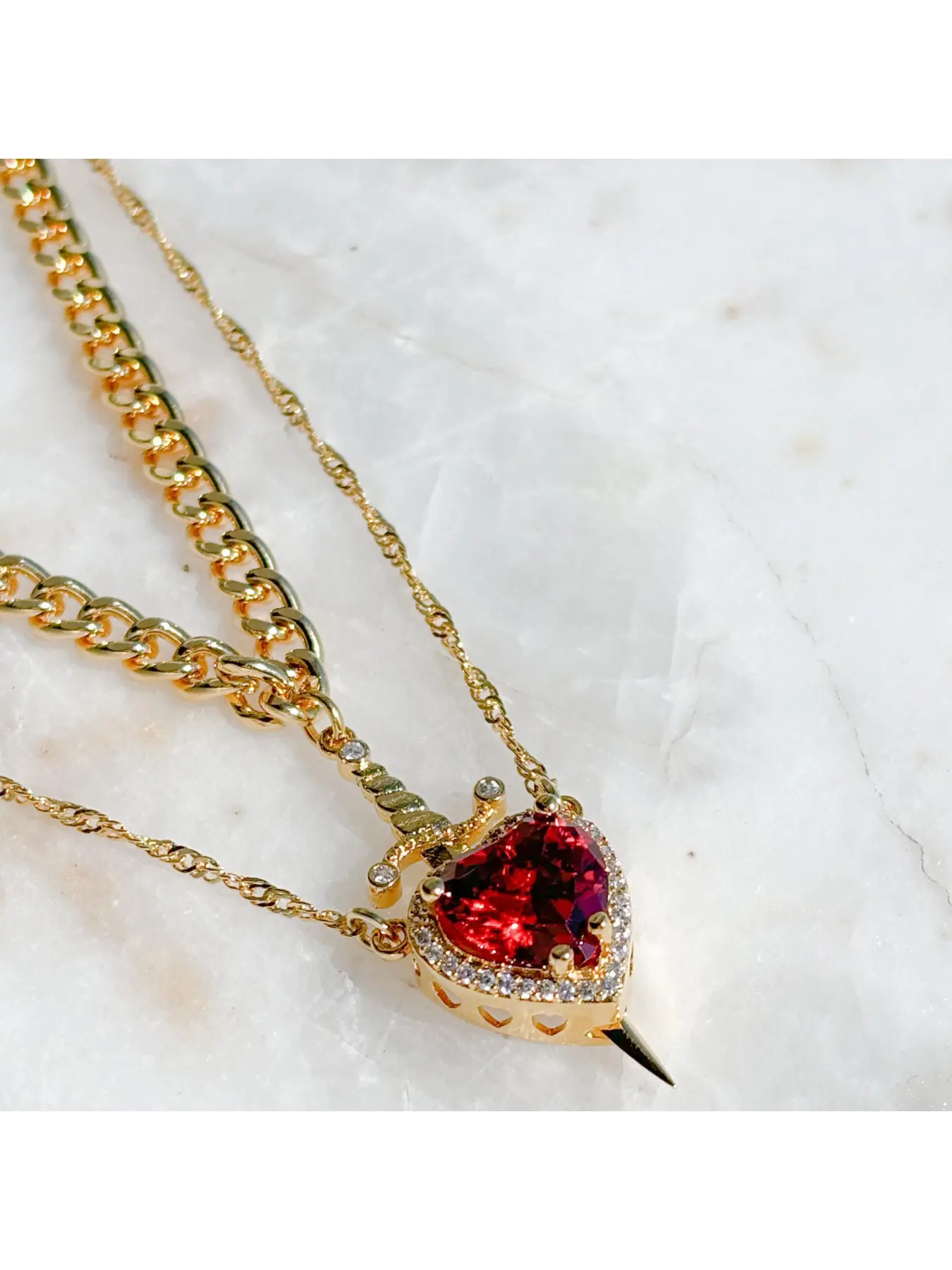 Silver sword golden red heart