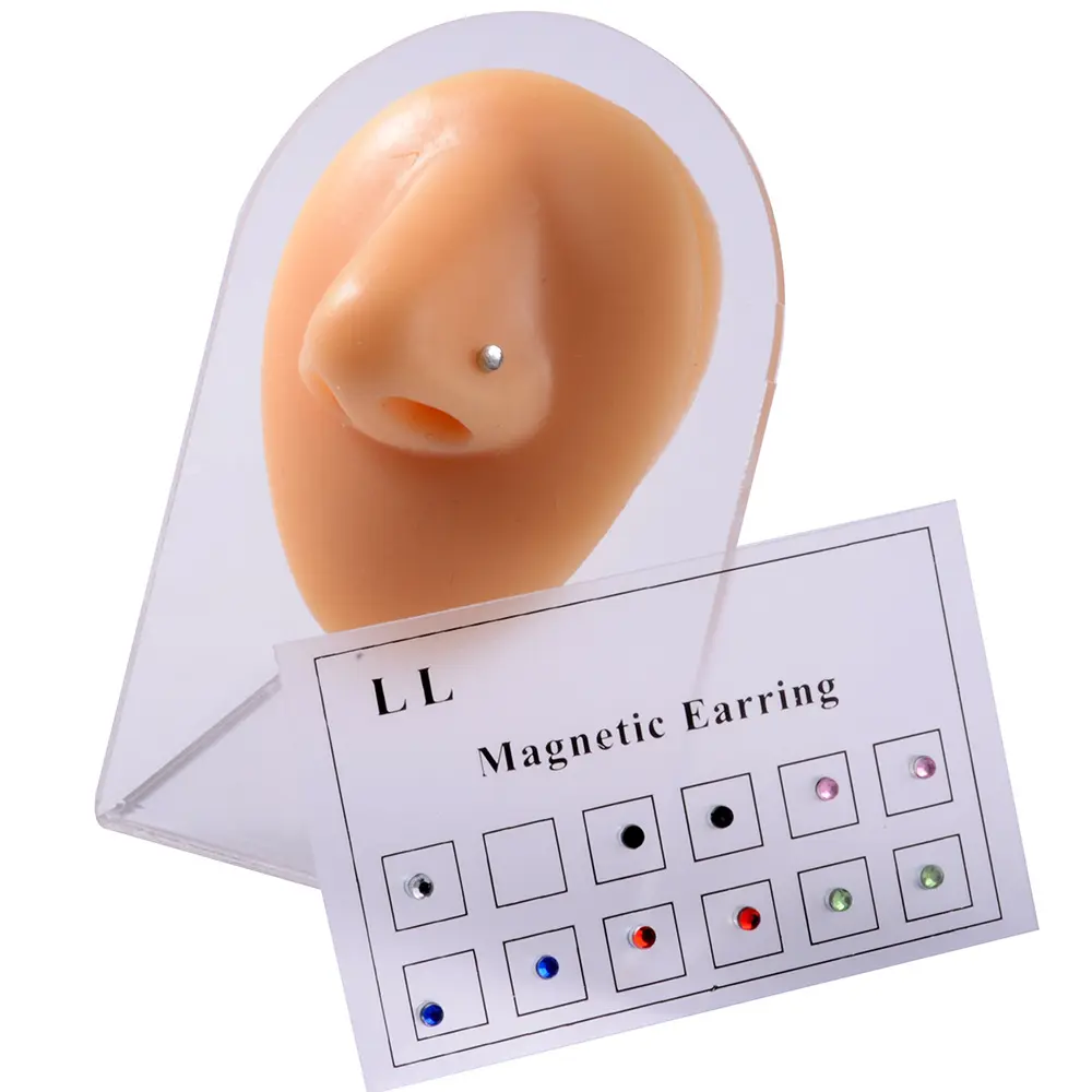 12 Pcs Stainless Steel Magnetic Crystal Fake Ear Stud Earrings Set Colorful 3mm Non Piercing Nose Lip Rings for Women Men Jewelry