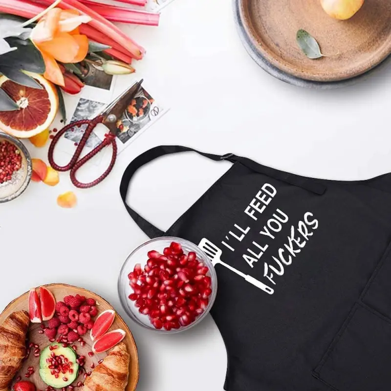 This black kitchen apron is full of personality. The eye - catching white text and patterns show a unique style, making cooking fun instantly. The double - pocket design is practical and thoughtful, allowing you to store small items like kitchen utensils and mobile phones. Made of high - quality, stain - resistant and easy - to - clean fabric, wear it and enjoy cooking while showing your master chef demeanor.