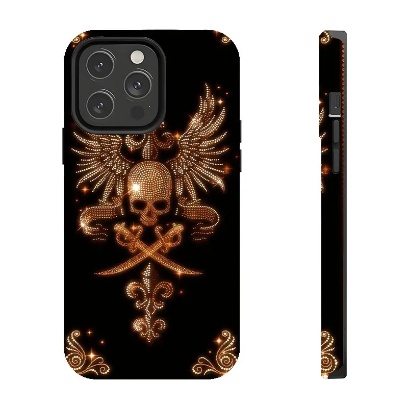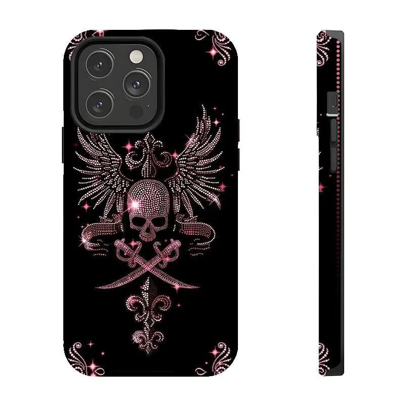 Sparkling Rhinestone Skull Wings Phone Case — Suitable for iPhone 11–17 Pro Max/Plus and Samsung Galaxy S23–25