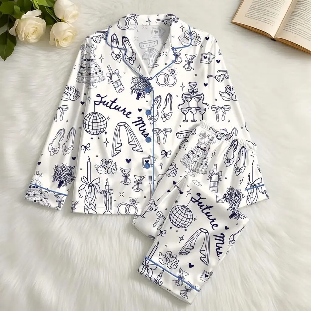 Womens Future Mrs Bride To Be Gift In My Engaged Era Short Sleeve Satin Pajama Set, Pajama Engagement Pajamas for Bride, Satin Pajama Set