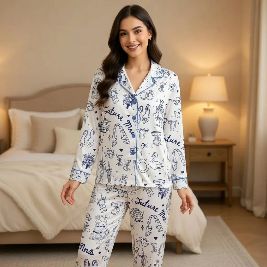 With its all-over print and glossy satin finish, this set is more than sleepwear—its everyday luxury you can wear and share.