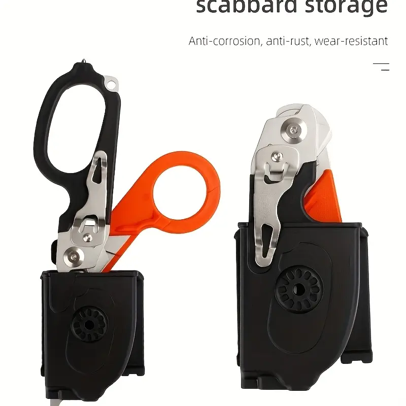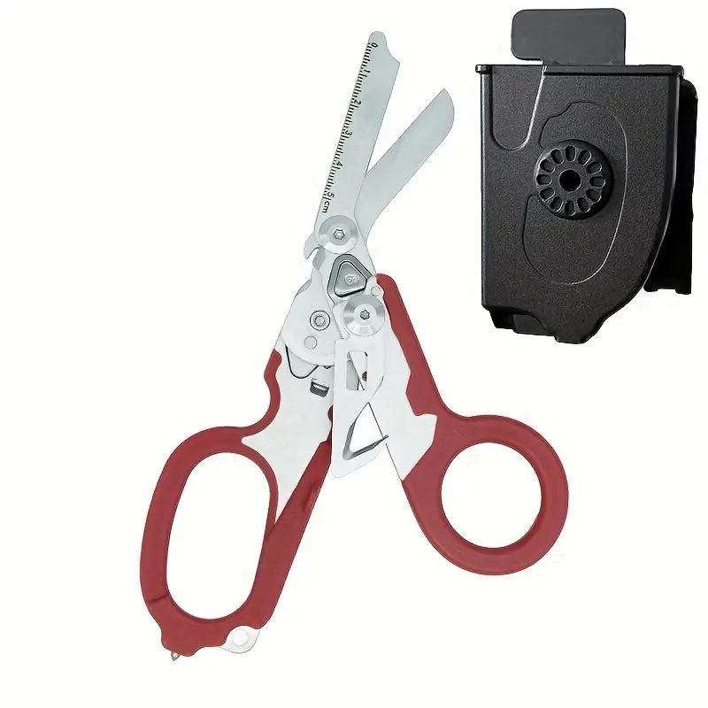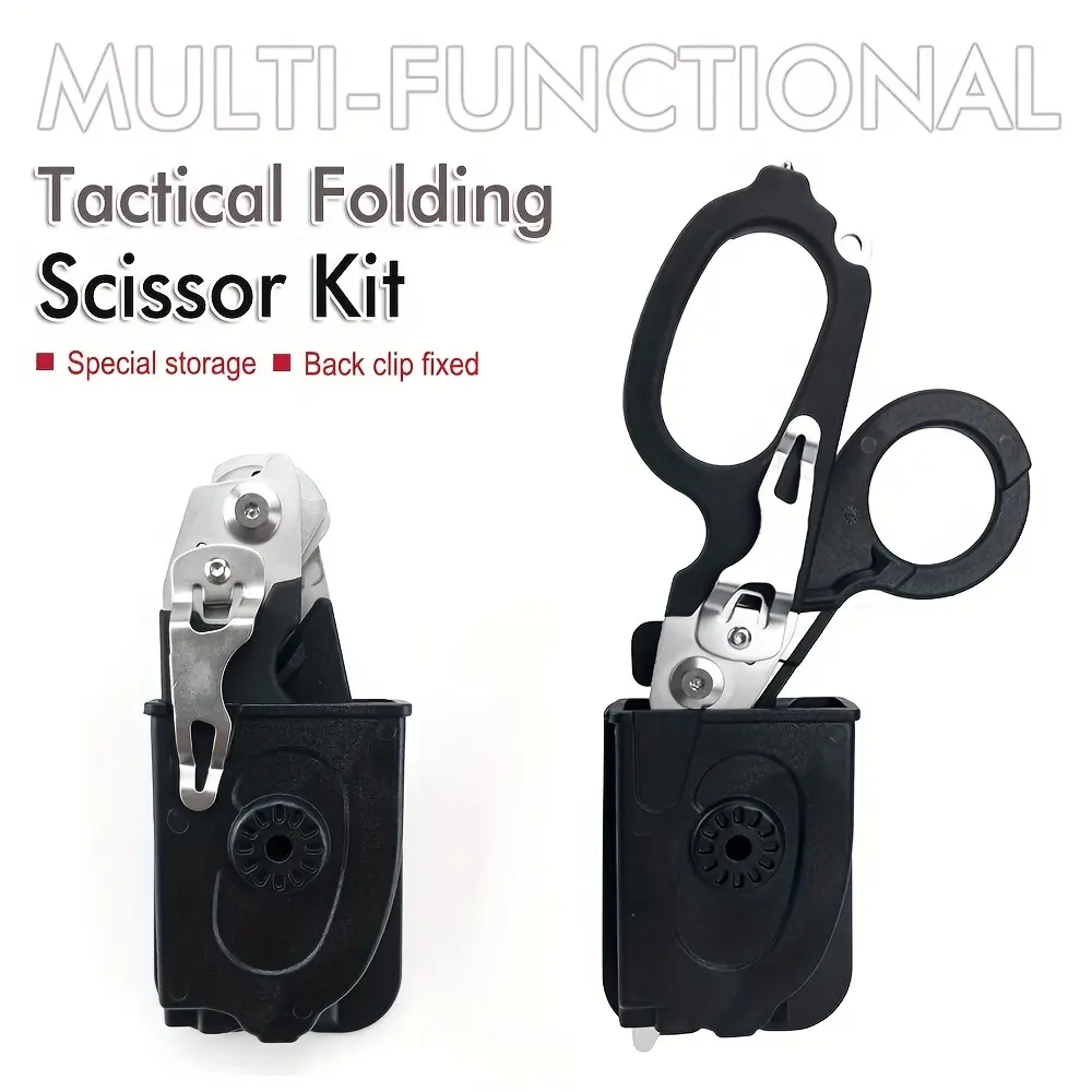 6-in-1 Multi-Function Trauma Shears with Holster - Stainless Steel Foldable Emergency Response Scissors, Outdoor Camping Rescue Tools, Includes Sheath, Camping Accessories, Camping Essentials, Sleek Metallic Finish, Durable Construction
