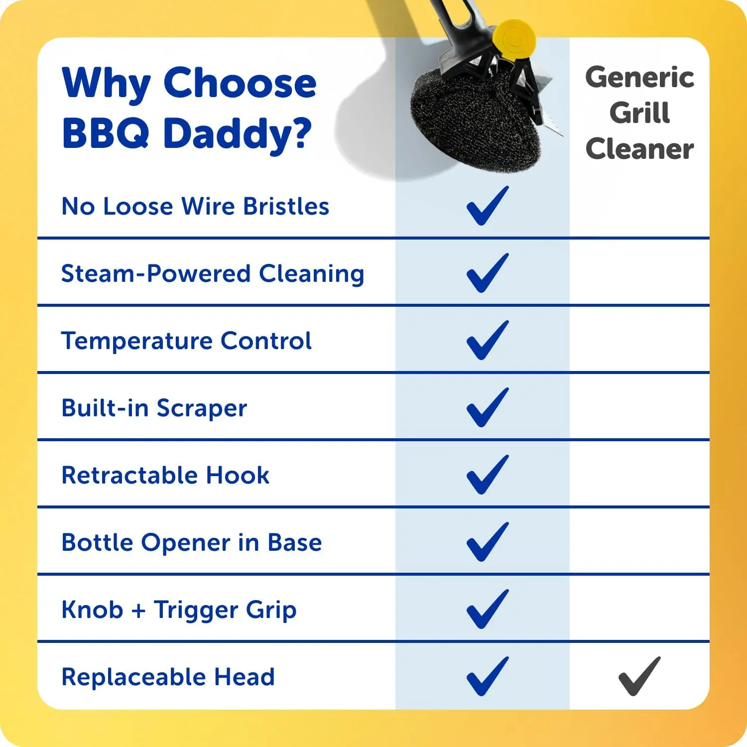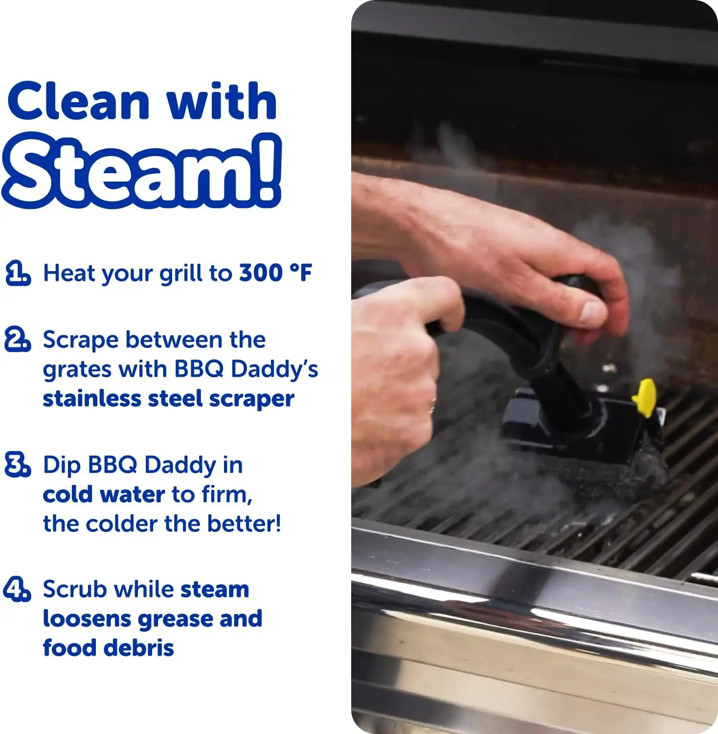·Harness the Power of Steam - BBQ Daddy is the ultimate grill brush for outdoor grill cleanup and can help you quickly scrub down a hot grill. As you scrub, steam from the grill helps the head soften to reach into grates for deeper grill cleaning.