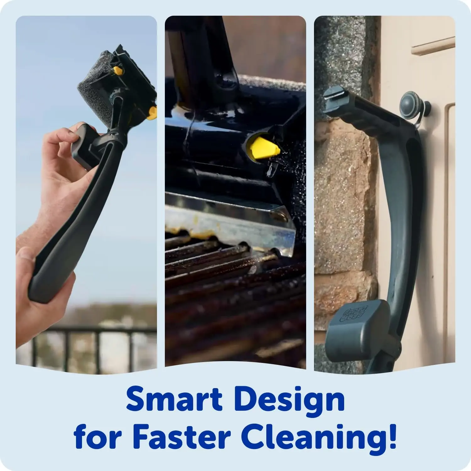 ·Clean with Steam, Not Bristles - Scrub Daddy Bristle Free Grill Brush for outdoor grills, uses a FlexTexture core that firms in cold water, and steam from the grill help the head soften to reach into grates for efficient grill cleaning.