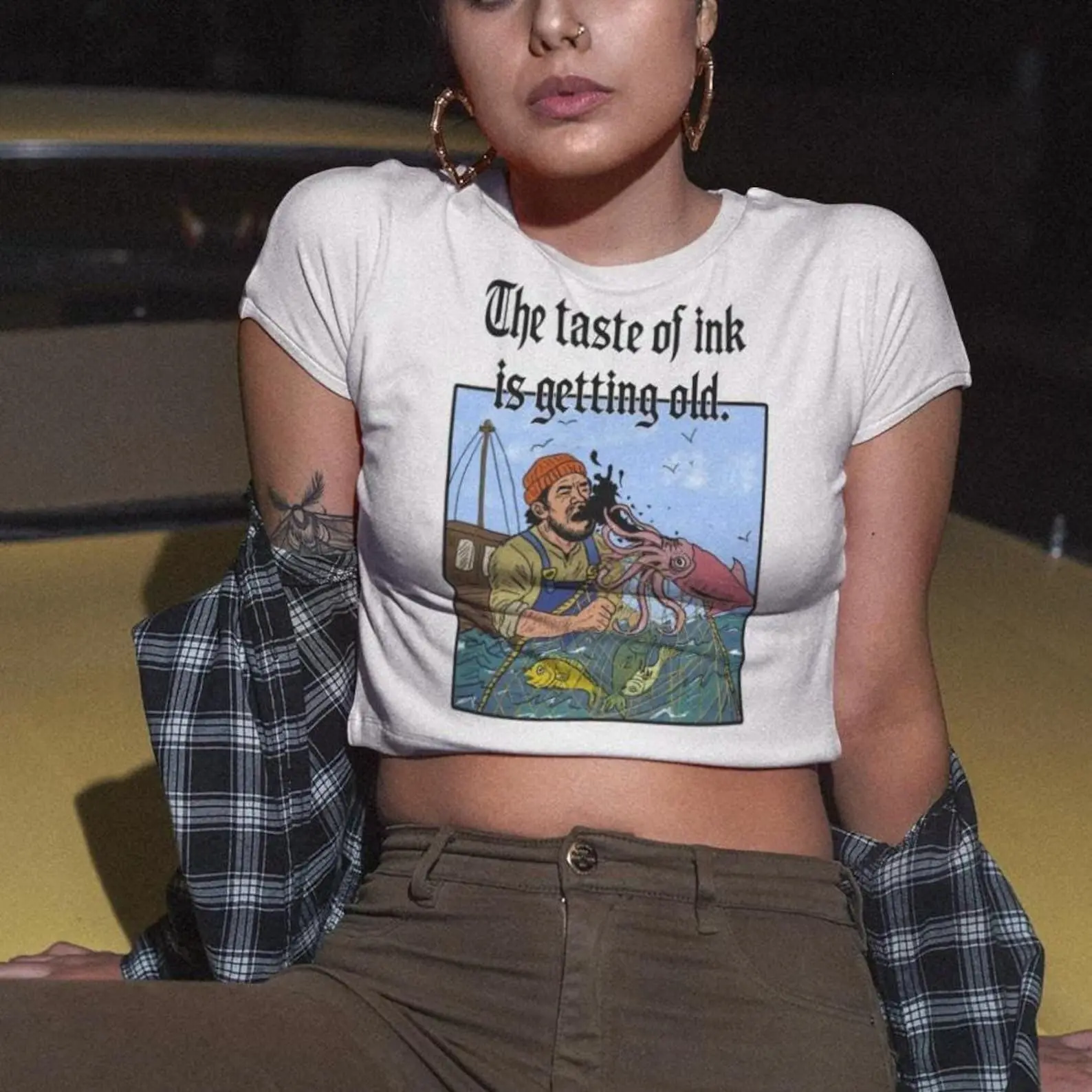 [Sale Off 50%, Freeship] Taste of Ink Y2K Baby Tee, Crop Graphic Tee, Vintage Style Top, Emo Shirt, Funny Graphic Shirt, Alt Streetwear, Womens Fitted Tee, Y2K Shirt