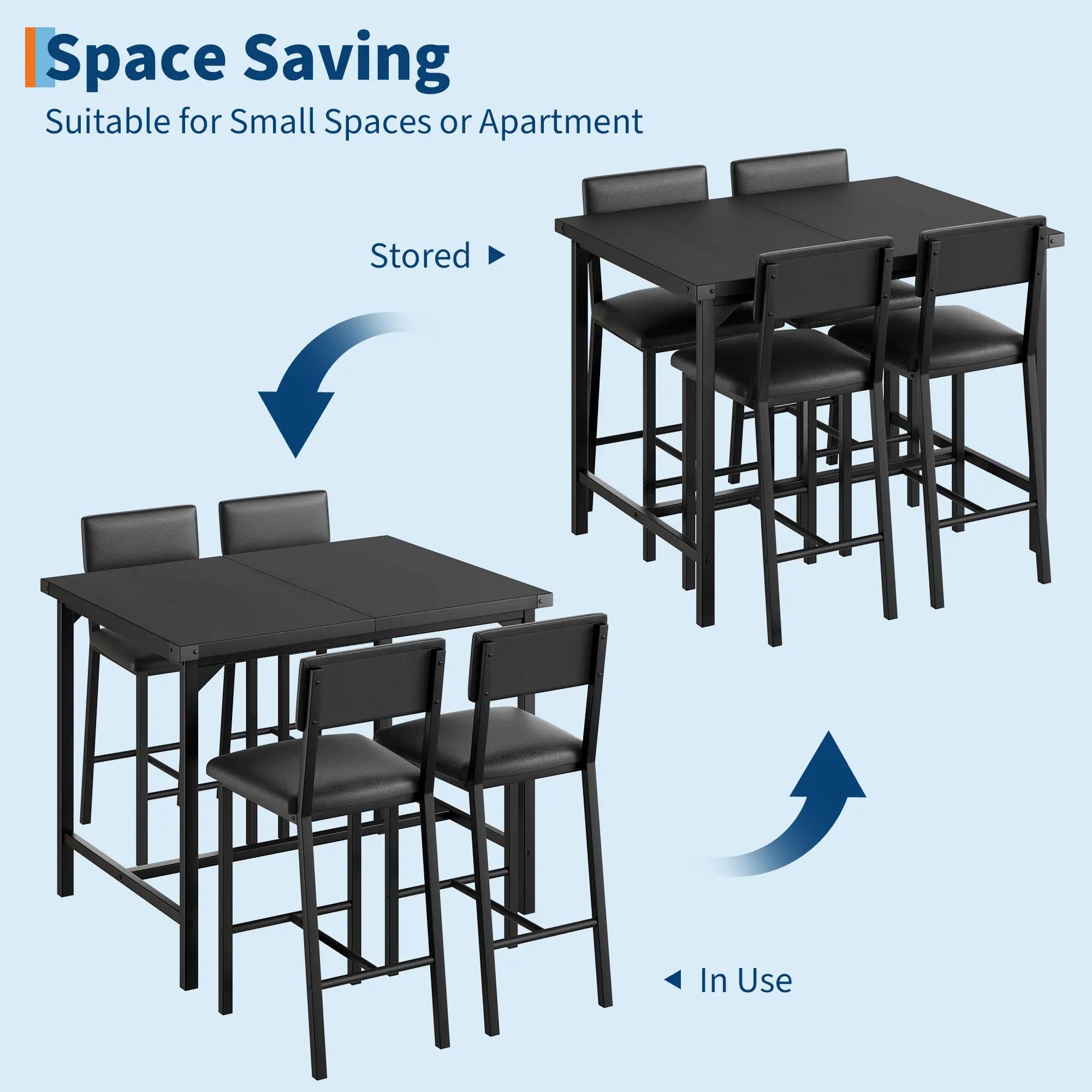 Compact and Space-Saving Design: The stools easily slide under the table when not in use, helping to maximize your living space. Available in multiple color options, this set suits various décor styles, making it a great addition to living rooms, dining spaces, or home bars.