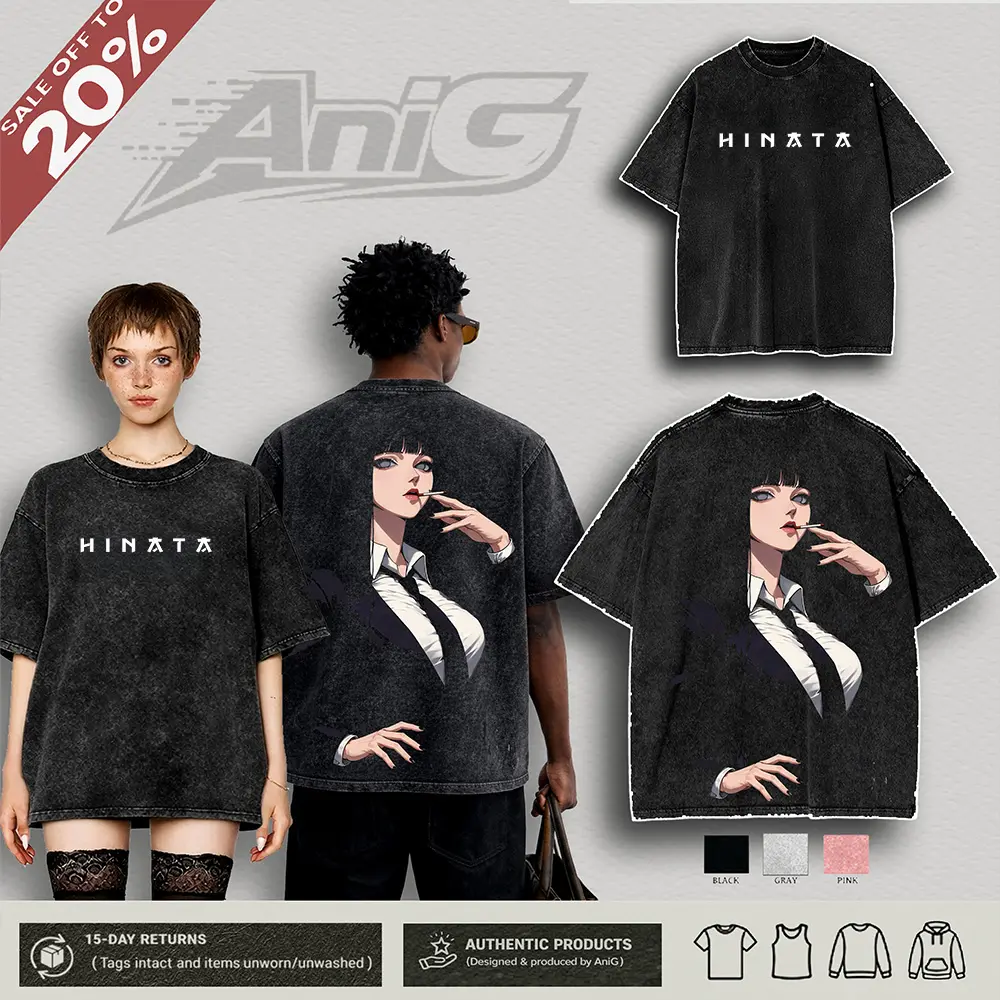 5. Hinata Hyuga art hot girl Naruto art Washed anime manga game T Shirts Streetwear Cotton wash Menswear graphic tee