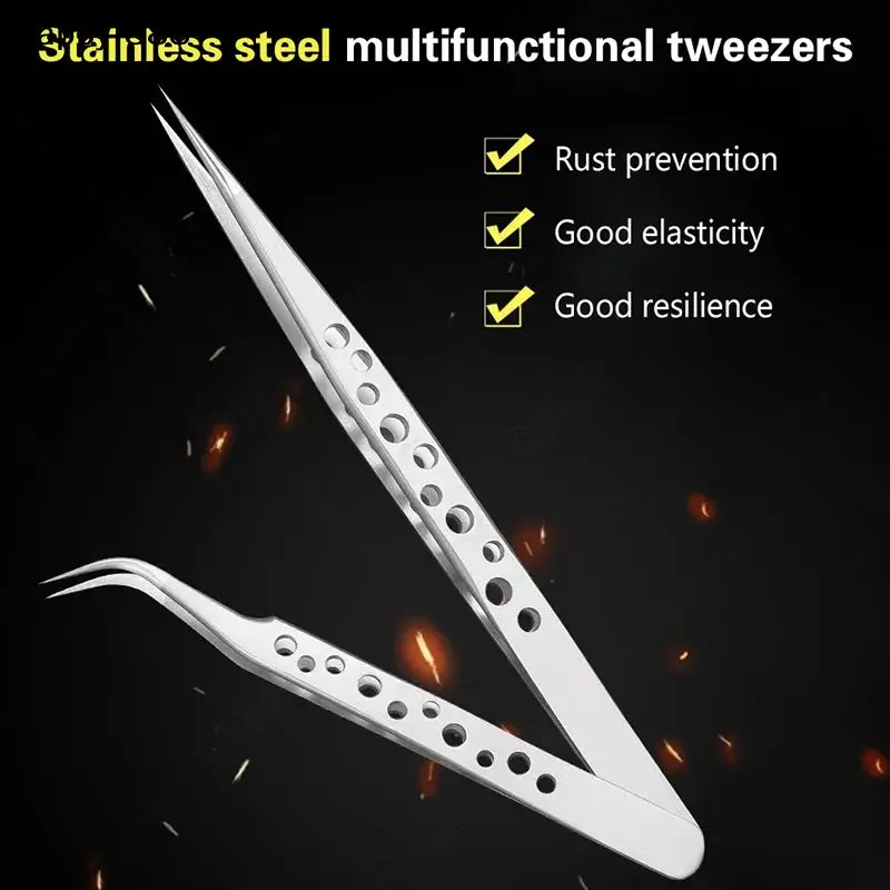 This 2-piece anti-static industrial tweezers set includes curved and straight tip options for electronics repair, DIY projects, and precision work. Made from durable stainless steel, they're built to handle the most delicate components safely and accurately.
