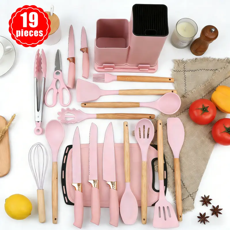 This kitchen utensil set is made from high-quality silicone and durable oak wood and can withstand temperatures up to 240°C. It is designed for strength and flexibility, providing ergonomic precision, reliable quality, and a comfortable grip, making it an excellent value choice for any kitchen.