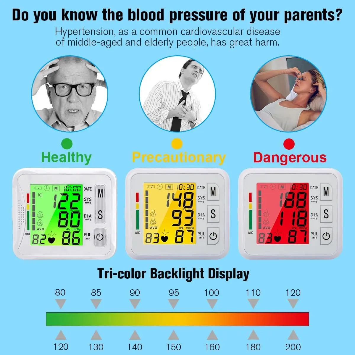 Wrist Blood Pressure Monitor 2026 Upgraded Digital BP Machine with Tri-Backlit Display, Automatic Wrist Blood Pressure Monitor Pulse Rate Monitoring, USB Rechargeable, 2x99 Memory Readings
