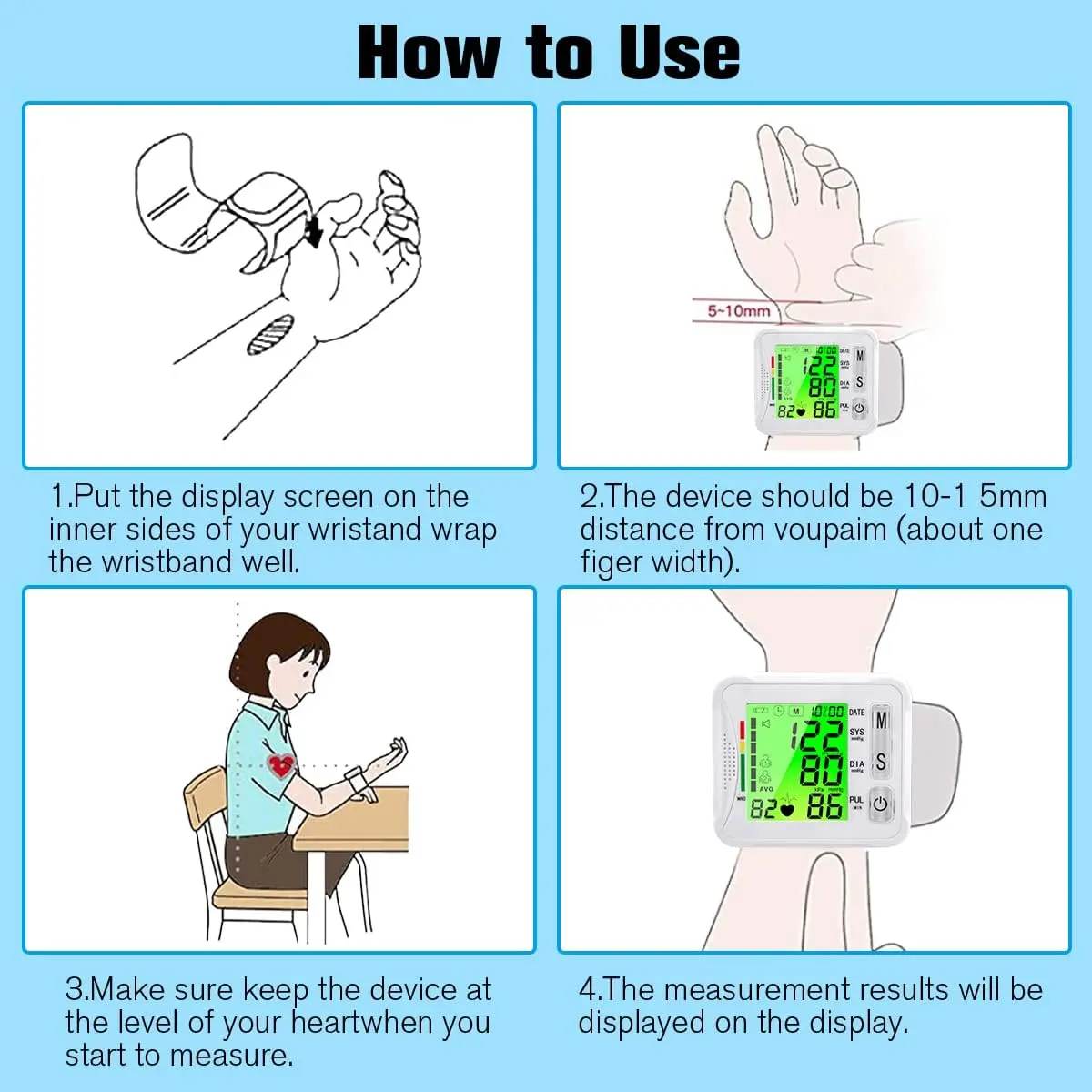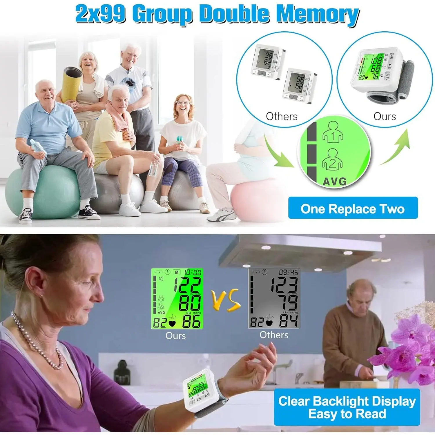Wrist Blood Pressure Monitor, Blood Pressure Cuff Wrist for Home Use, Automatic Digital BP Monitor with Large Backlit Display, 2 User 120 Memory, Adjustable 5.3"-8.5" Cuff