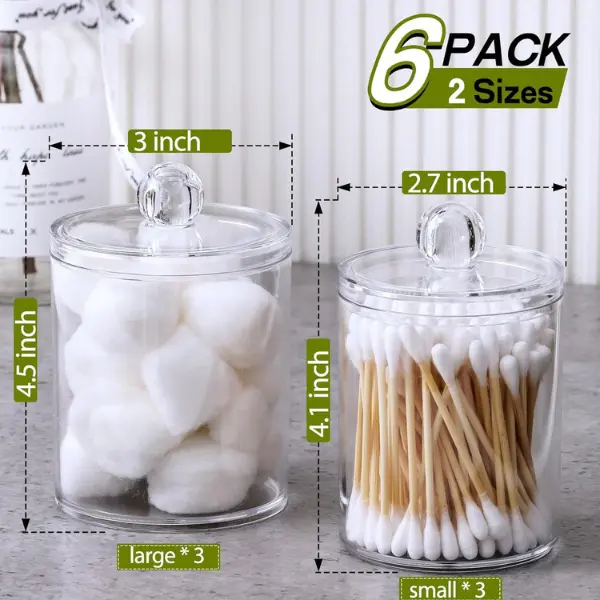 6 Pack Acrylic Qtip Holder Dispenser Set, Clear Cotton Swab Ball Pad Storage Jars, Bathroom Vanity Organizer, Plastic Canister Storage