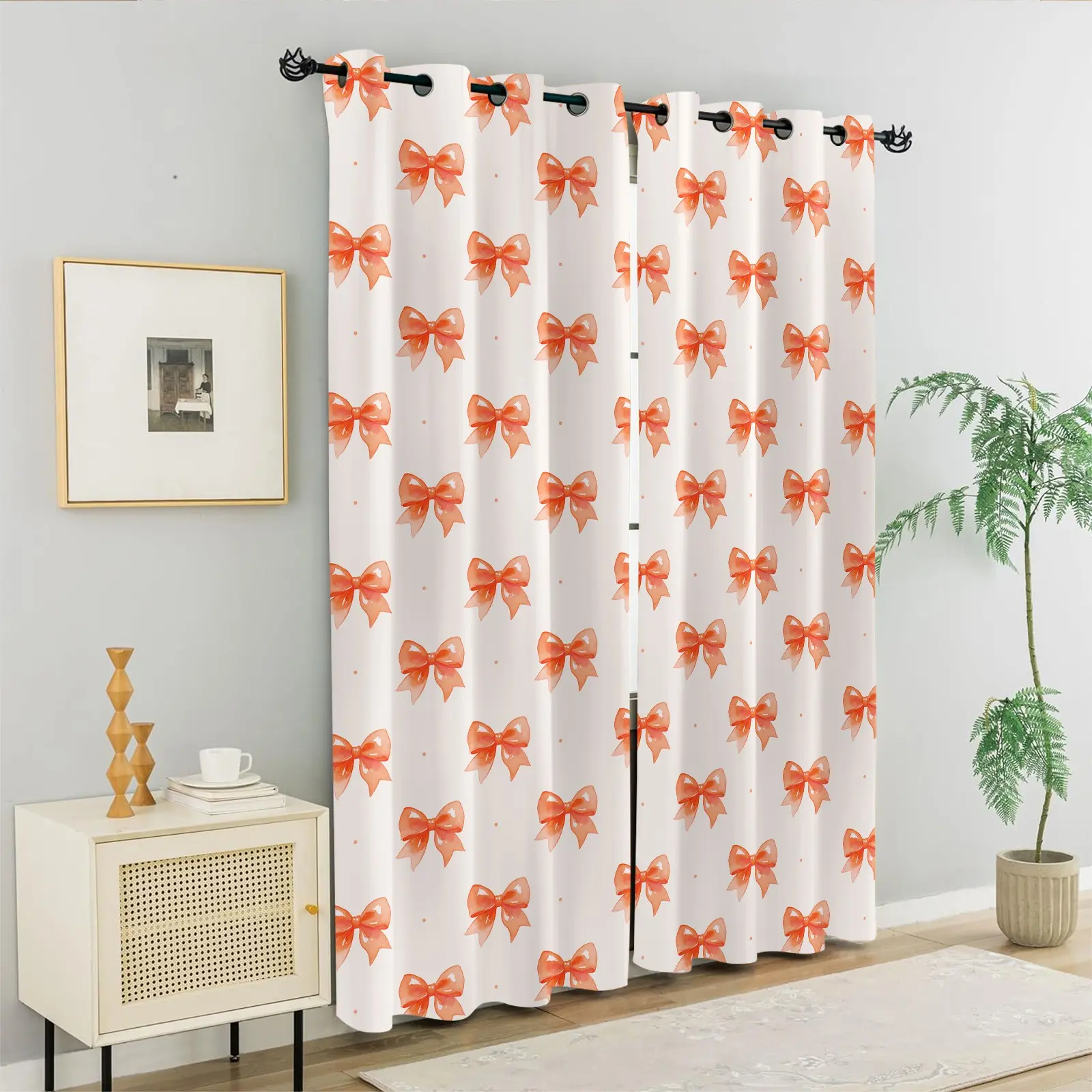 【Bow Knot Pattern】: Featuring a cute bow knot pattern, these curtains add a playful touch to any room decor.