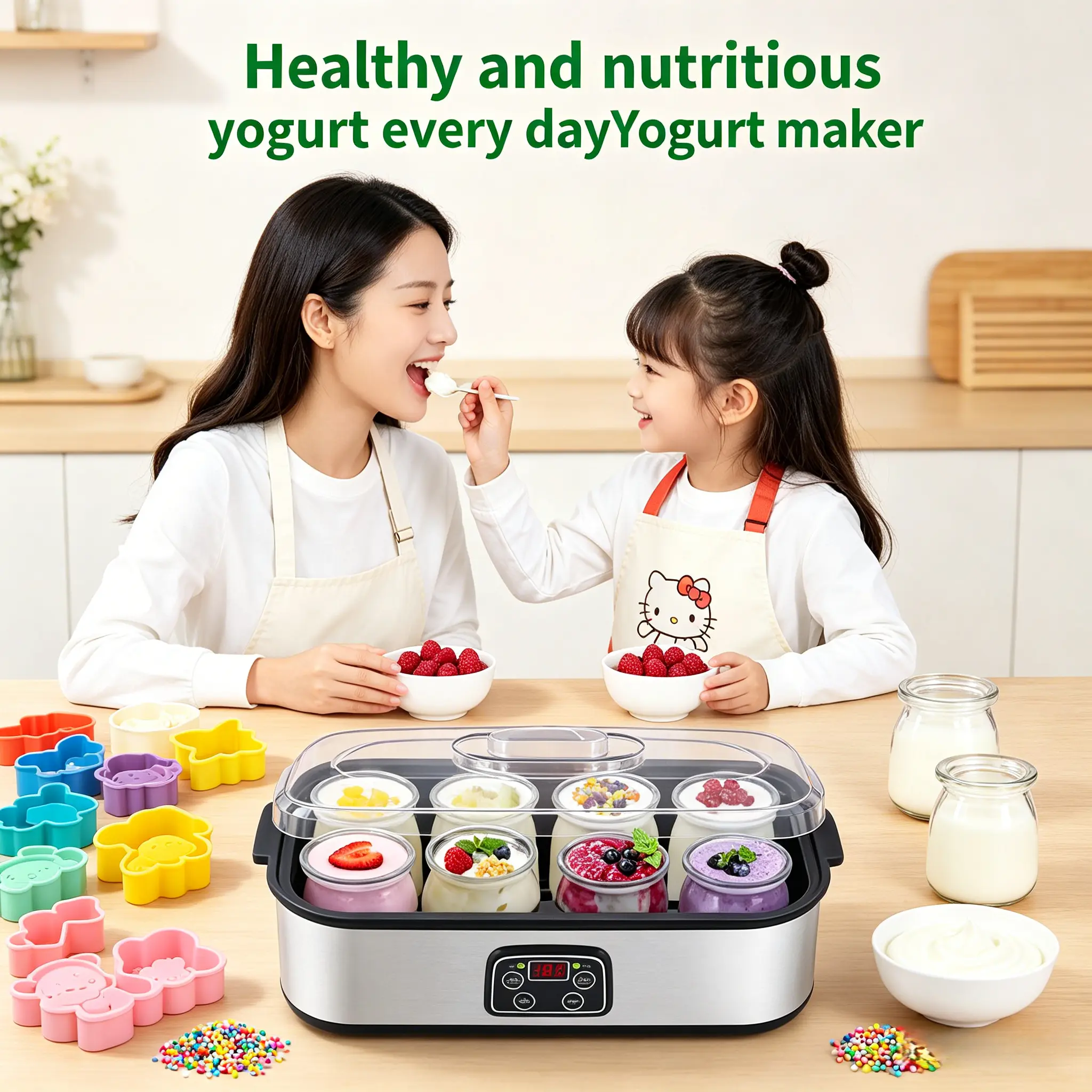 Transform your kitchen into a DIY snack station with this 1pc Family 8-Cup Automatic Yogurt Maker. Perfect for home breakfasts and healthy snacks, it offers a complete jar set for versatile recipes. Make yogurt, jam, ice cream, and pudding effortlessly. The multifunctional electric fermenter simplifies your cooking routine.
