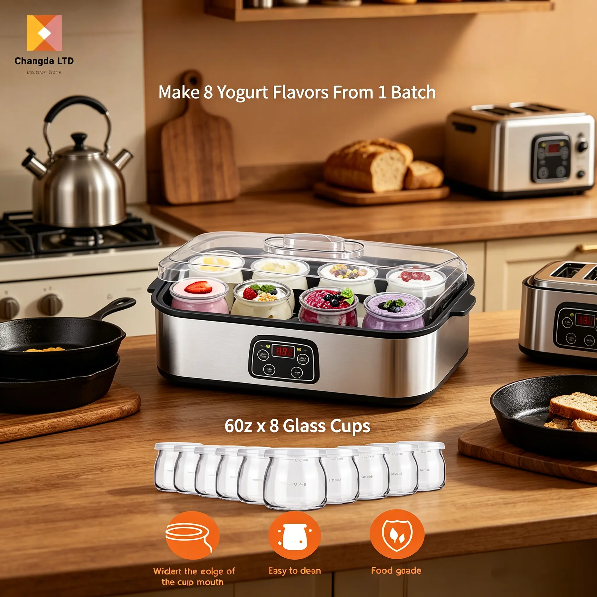 1pc Family 8-Cup Automatic Yogurt Maker, Multifunctional Electric Fermenter with US Plug, Makes Yogurt Jam Ice Cream Pudding, Complete Jar Set for Home Breakfast & Healthy DIY Snacks