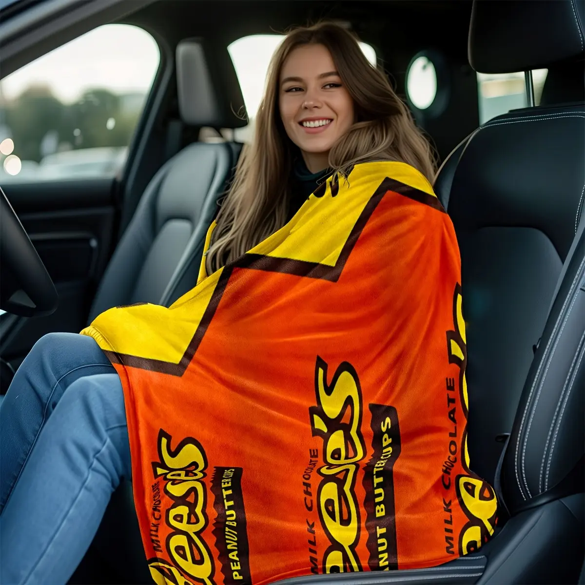 Reese'S Peanut Butter Cups Flannel Throw Blanket - Contemporary Style, Soft And Cozy, All-Season Multipurpose, Machine Washable, Digital Print, 200-250Gsm, Ideal for Sofa, Bed, Office, Camping, Travel - Great Gift for All Occasions