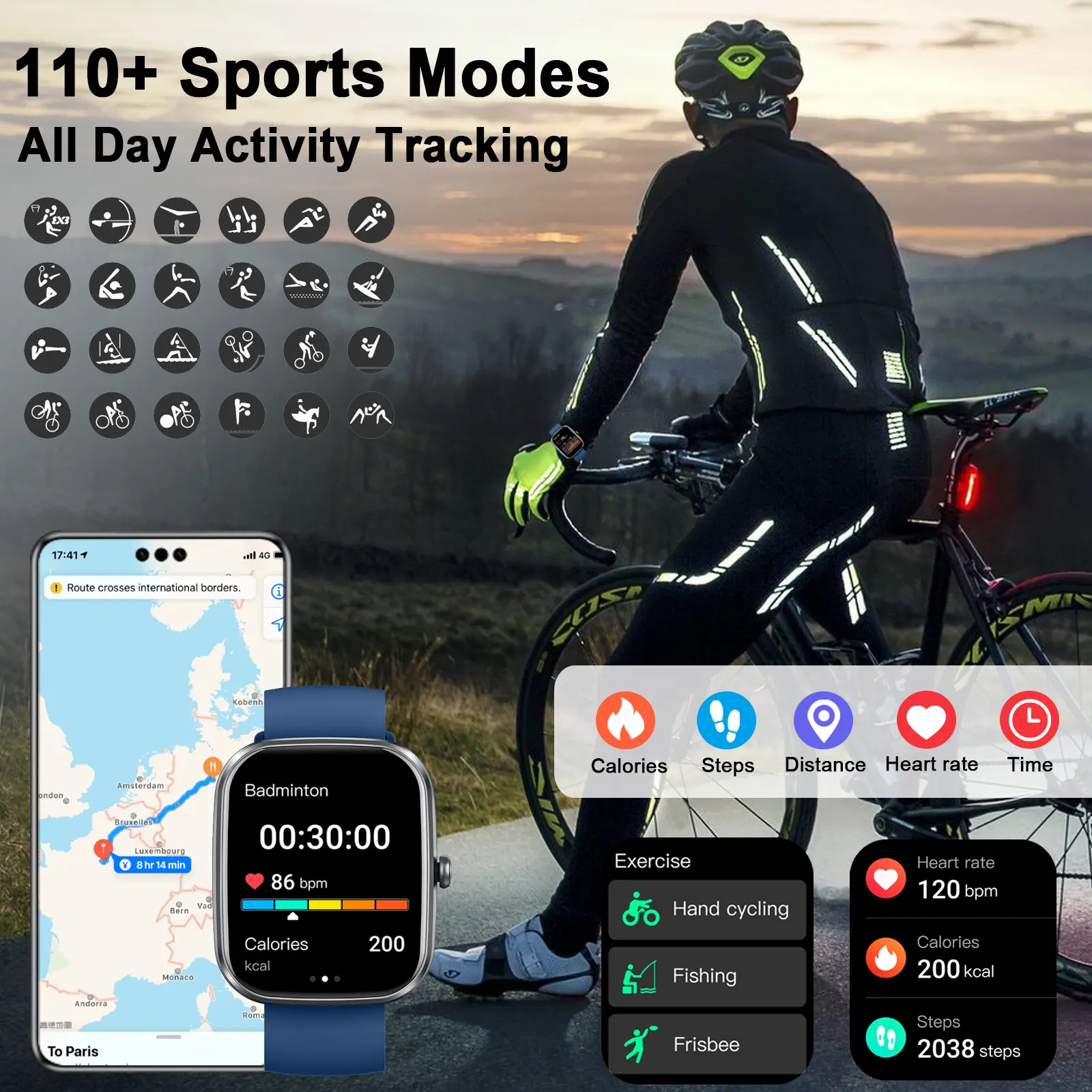 ·【110+ Sports Modes & IP68 Waterproof – Ready for Any Workout】Whether you're into walking, running, cycling, basketball, jump rope, or hiking, this android smart watch supports over 110 sports modes with accurate activity tracking. It records your workout metrics like steps, duration, calories burned, heart rate, and distance in real-time. With an IP68 waterproof rating, you can confidently wear it while sweating or in light rain. (Note: Not suitable for hot showers or swimming.)