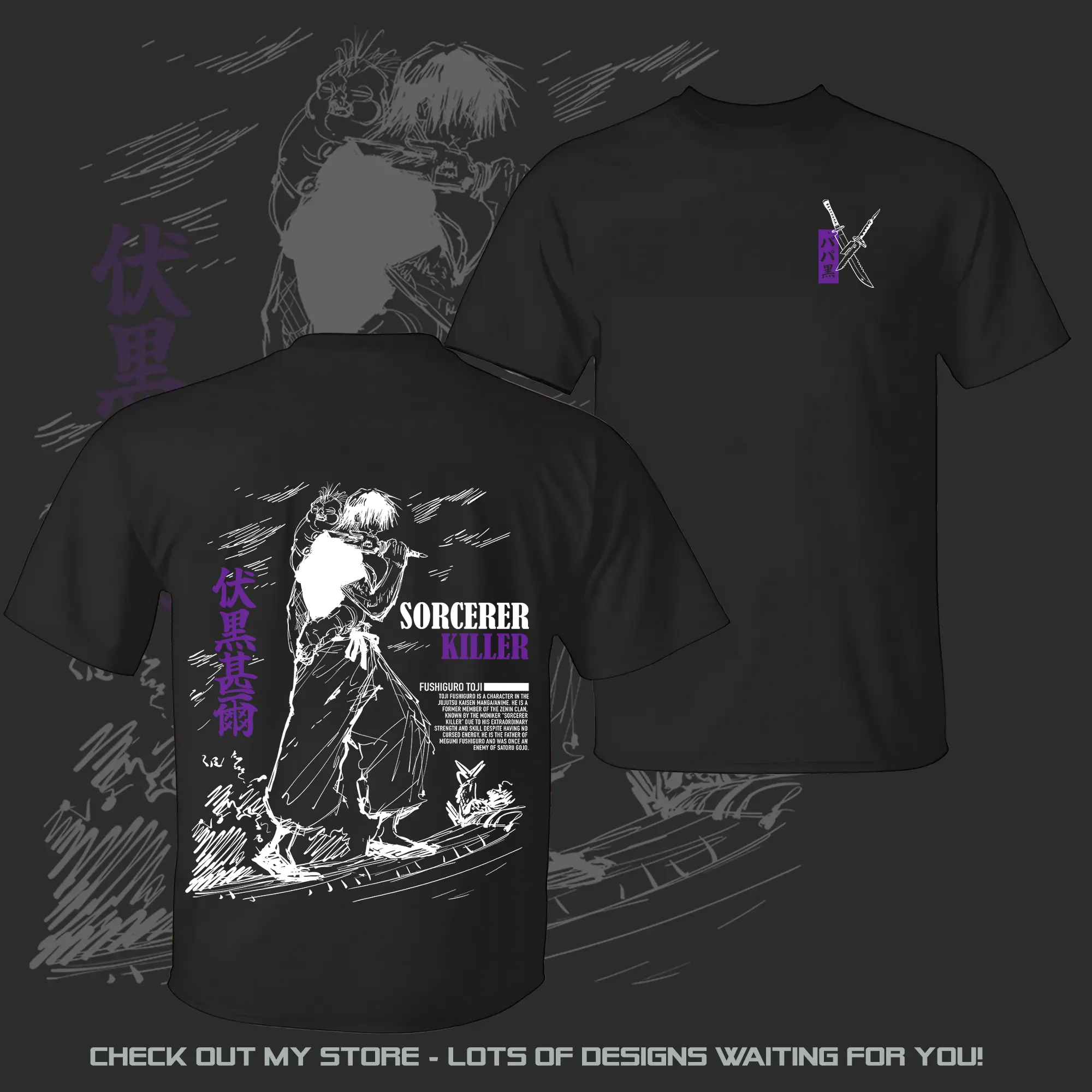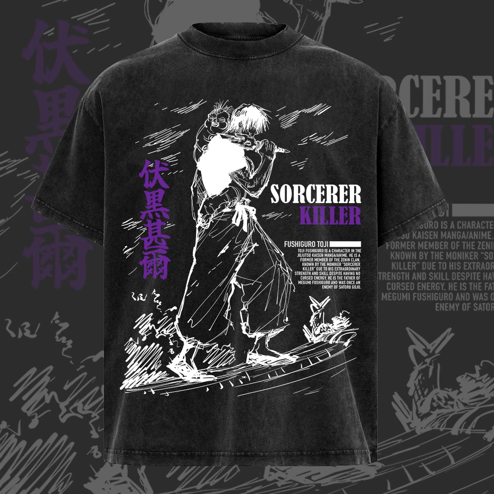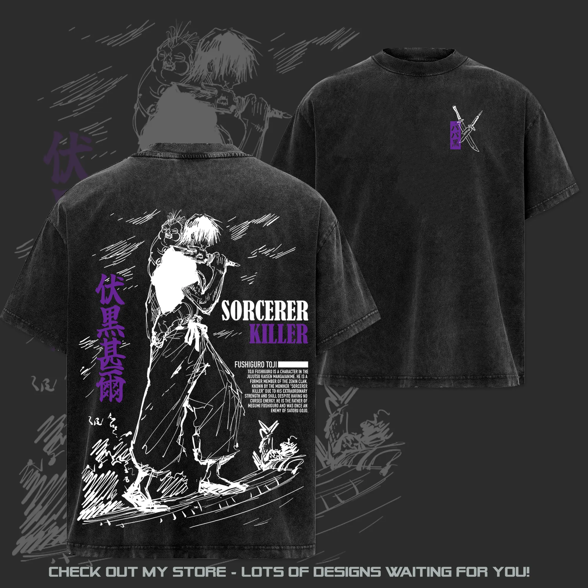 5. Toji Fushiguro - Jujutsu Kaisen Washed Tee - Hoodie | Vintage Washed Anime Graphic Tee - Dark Aesthetic Oversized Streetwear Shirt for Anime Fans, Summer Outfits, Gift For Him Her