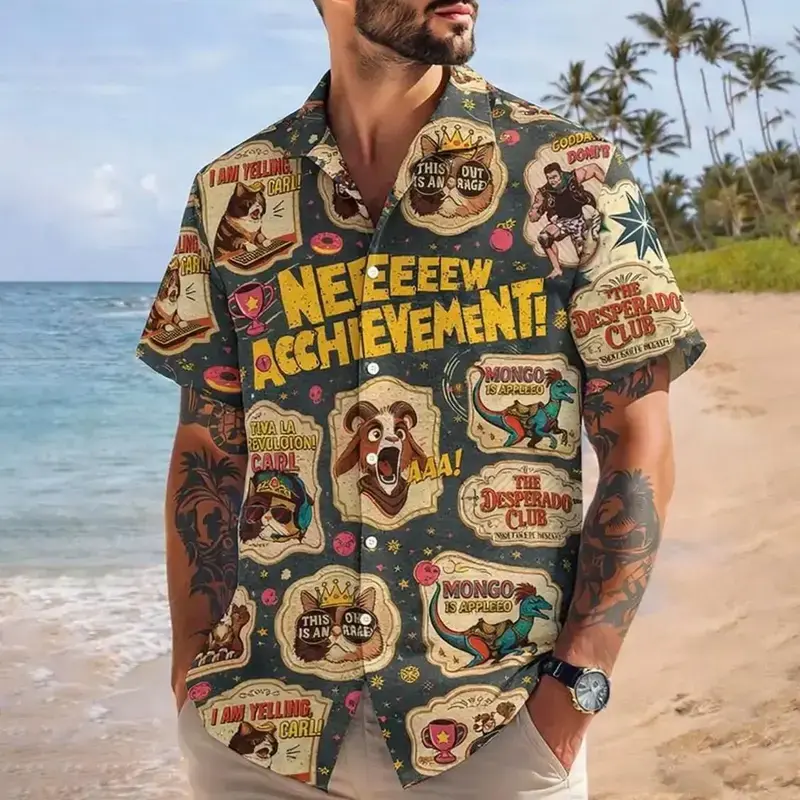 Achievement Dungeon Crawler Carl Hawaiian Shirt, Fantasy DnD For Gamers Shirt, RPG Lover Gift Hawaiian, Mythical Dragons Button Up Shirt