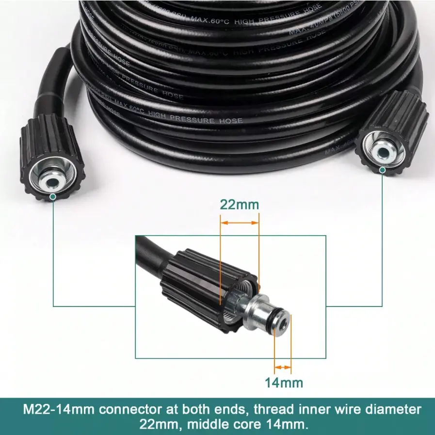 ·Connection Size: The M22-14mm connection fits most power washers, making it a versatile extension hose.