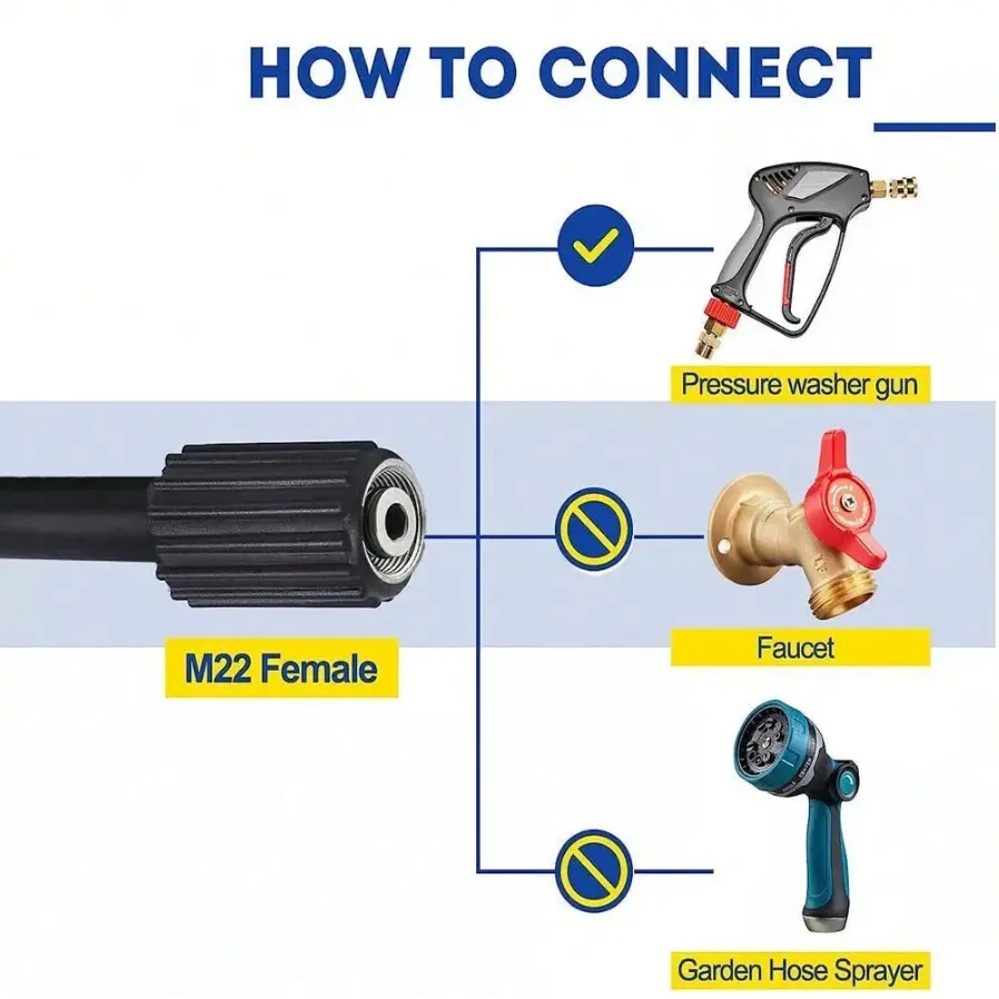 ·Compatibility: The M22-14mm size ensures it connects easily with most power washers, enhancing its utility.