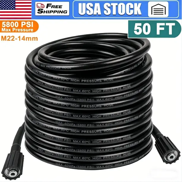·Length & Pressure: This hose measures 15m/50ft, perfect for extensive cleaning tasks. It supports a powerful 5800PSI, ensuring efficient cleaning.