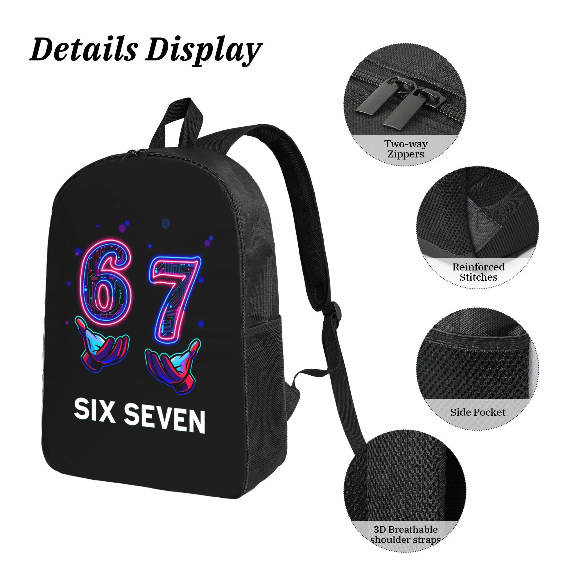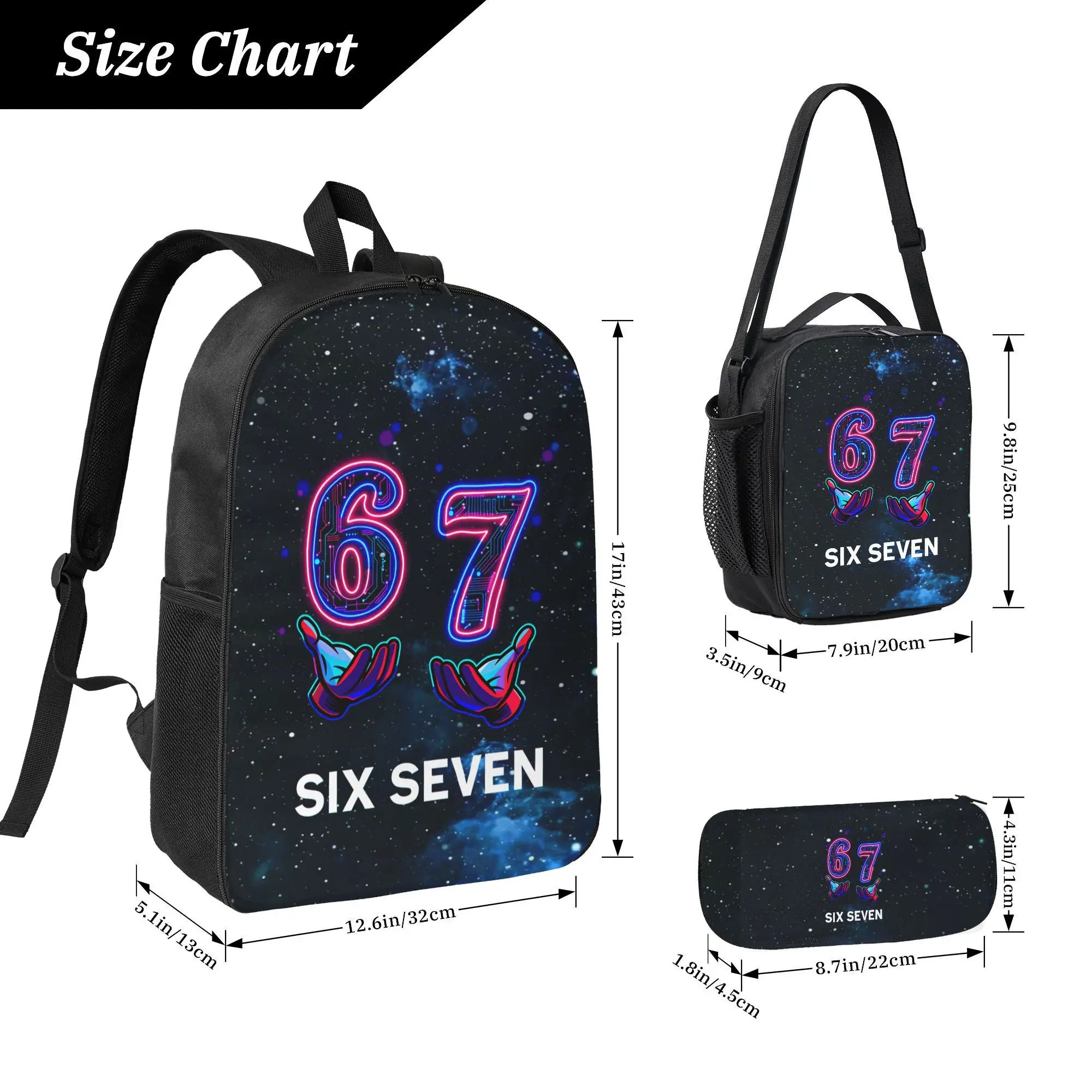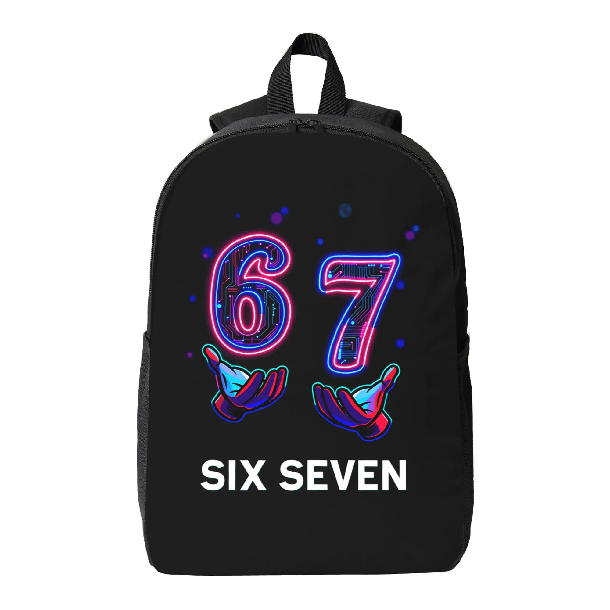 The "67" collection—a set comprising a backpack, a shoulder bag, and a storage pouch—features a neon-style "67" motif accented with hand-gesture graphics, creating a distinctive cyberpunk aesthetic. It is the ideal choice for both travel and school.The "67" collection—a set comprising a backpack, a shoulder bag, and a storage pouch—features a neon-style "67" motif accented with hand-gesture graphics, creating a distinctive cyberpunk aesthetic. It is the ideal choice for both travel and school.The "67" collection—a set comprising a backpack, a shoulder bag, and a storage pouch—features a neon-style "67" motif accented with hand-gesture graphics, creating a distinctive cyberpunk aesthetic. It is the ideal choice for both travel and school.