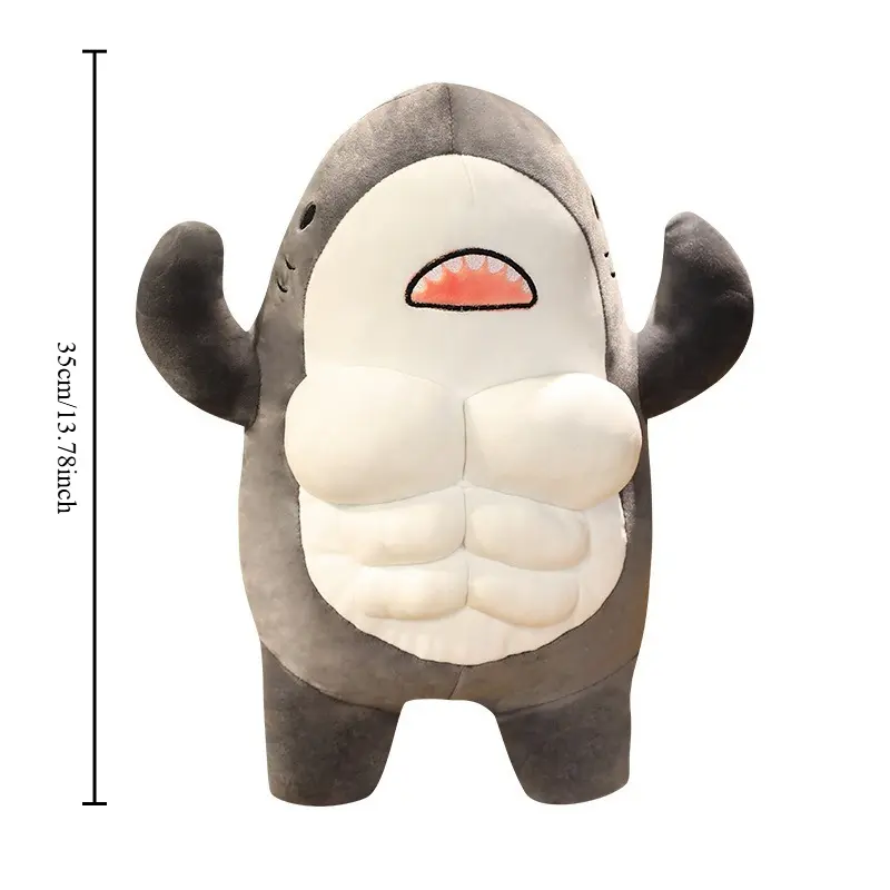 2026 New Muscle Shark Plush Toy | Unique and trendy decorative style | Soft plush material (durable texture) sleeping companion doll + desktop decoration + fitness-themed gift weighted rare stuffed animals Cartoon Gorilla Backpack Whale Kawaii