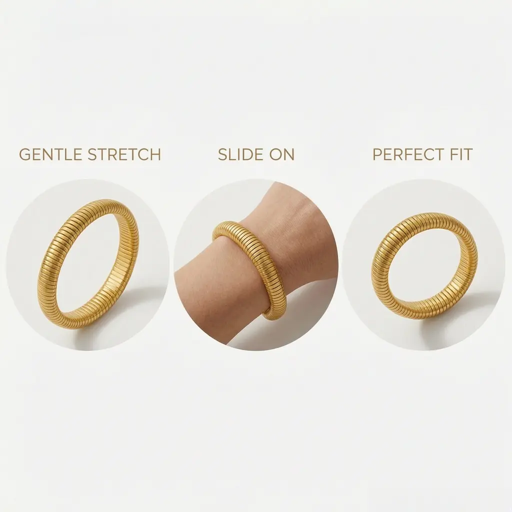 【Exquisite design】Shiny every angle after highly polished. The simple design shows elegance. This stacked elastic bracelet can be worn alone or stacked to match different clothes and moods.