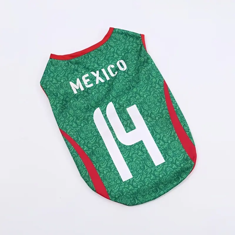 Mexico 2026 Soccer Pet Jersey - Sleeveless Breathable Fabric, Suitable for Dogs and Cats, Comfortable for All Seasons, Machine Washable, Fluorescent Green with Red and White Stripes and "Mexico 14" Number, Pet Sportswear, Lively Design