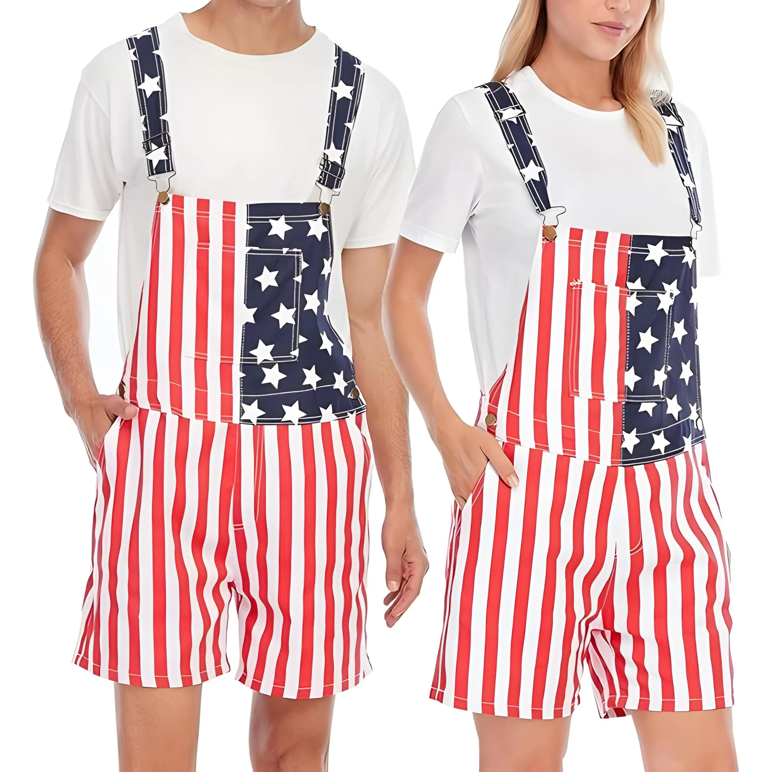 4th of July American Flag Denim Short Overalls, Mens Womens Stretch Coveralls, Breathable Patriotic Romper for BBQ, Hiking, Beach, National Day Festival, Casual Summer Fashion4th of July American Flag Denim Short Overalls, Mens Womens Stretch Coveralls, Breathable Patriotic Romper for BBQ, Hiking, Beach, National Day Festival, Casual Summer Fashion