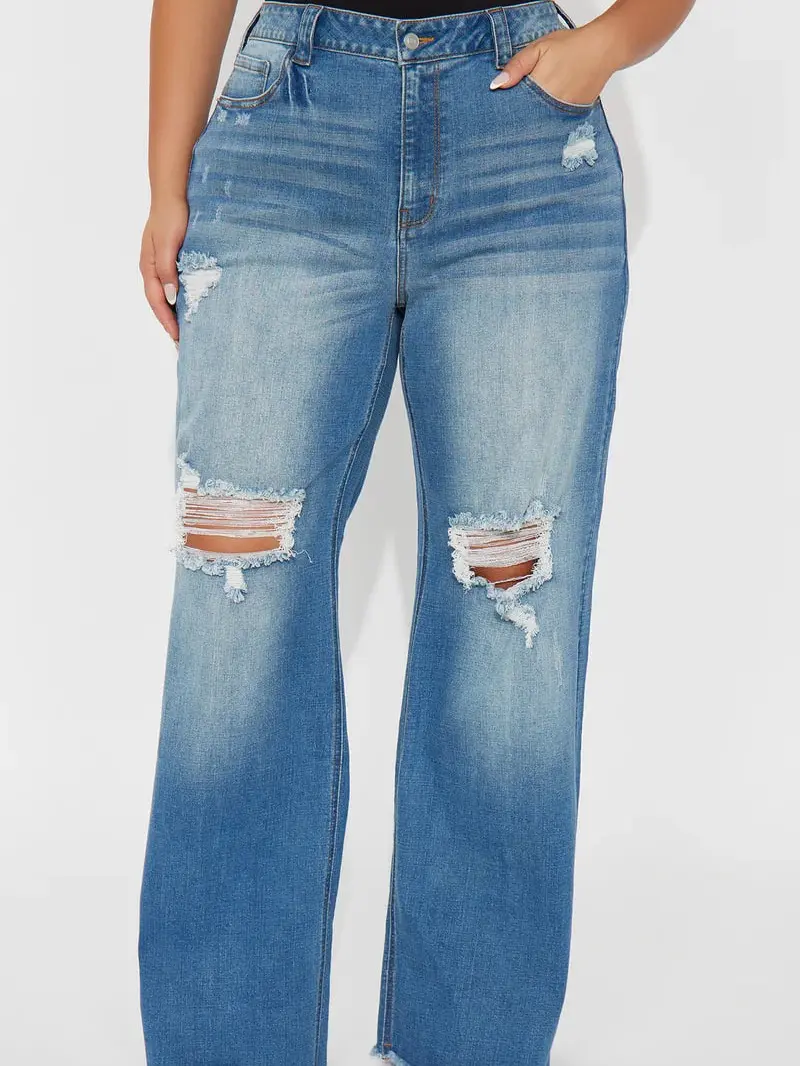 Tough Love Baggy Ripped Straight Leg Jean - Medium Wash