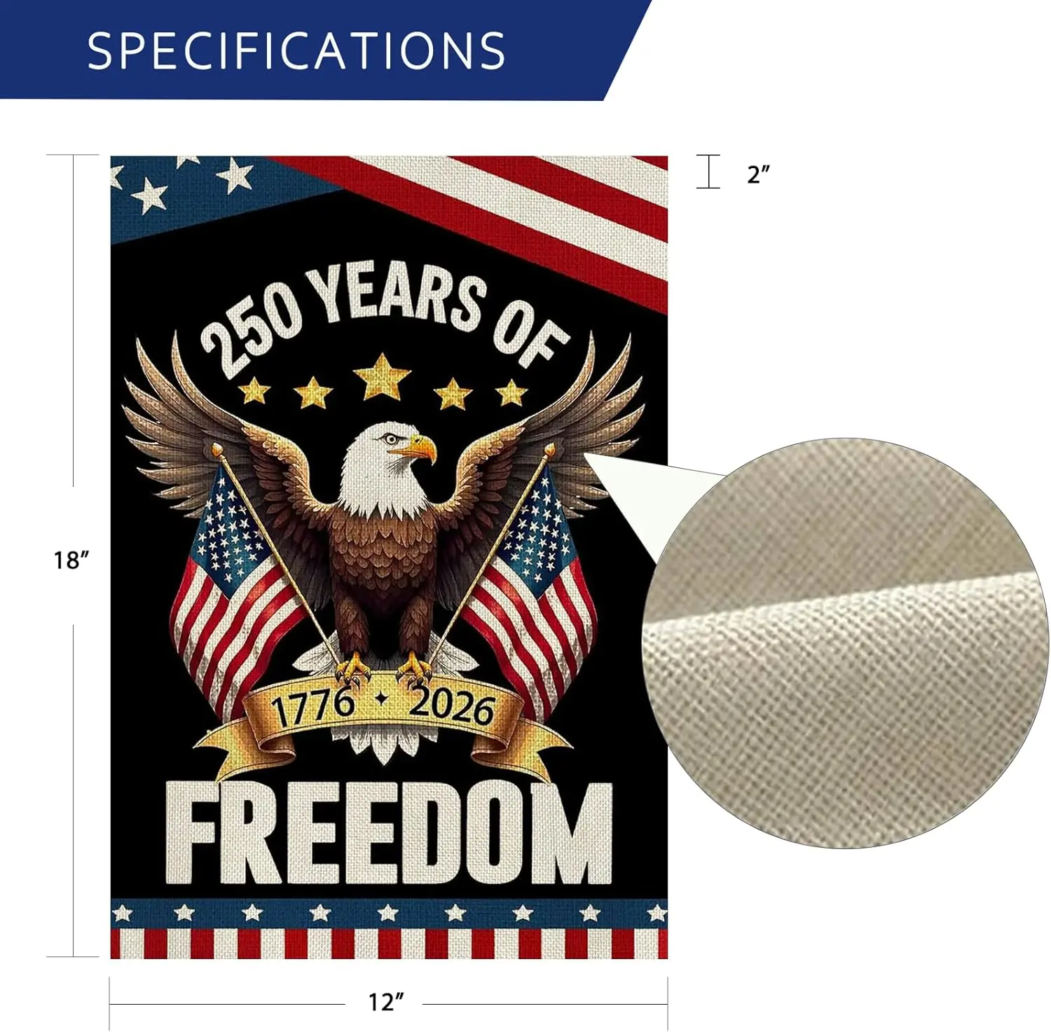 ·DURABLE MATERIAL: The 250 anniversary usa flag is crafted from high-quality burlap material to withstand outdoor conditions while maintaining vibrant colors and crisp graphics.