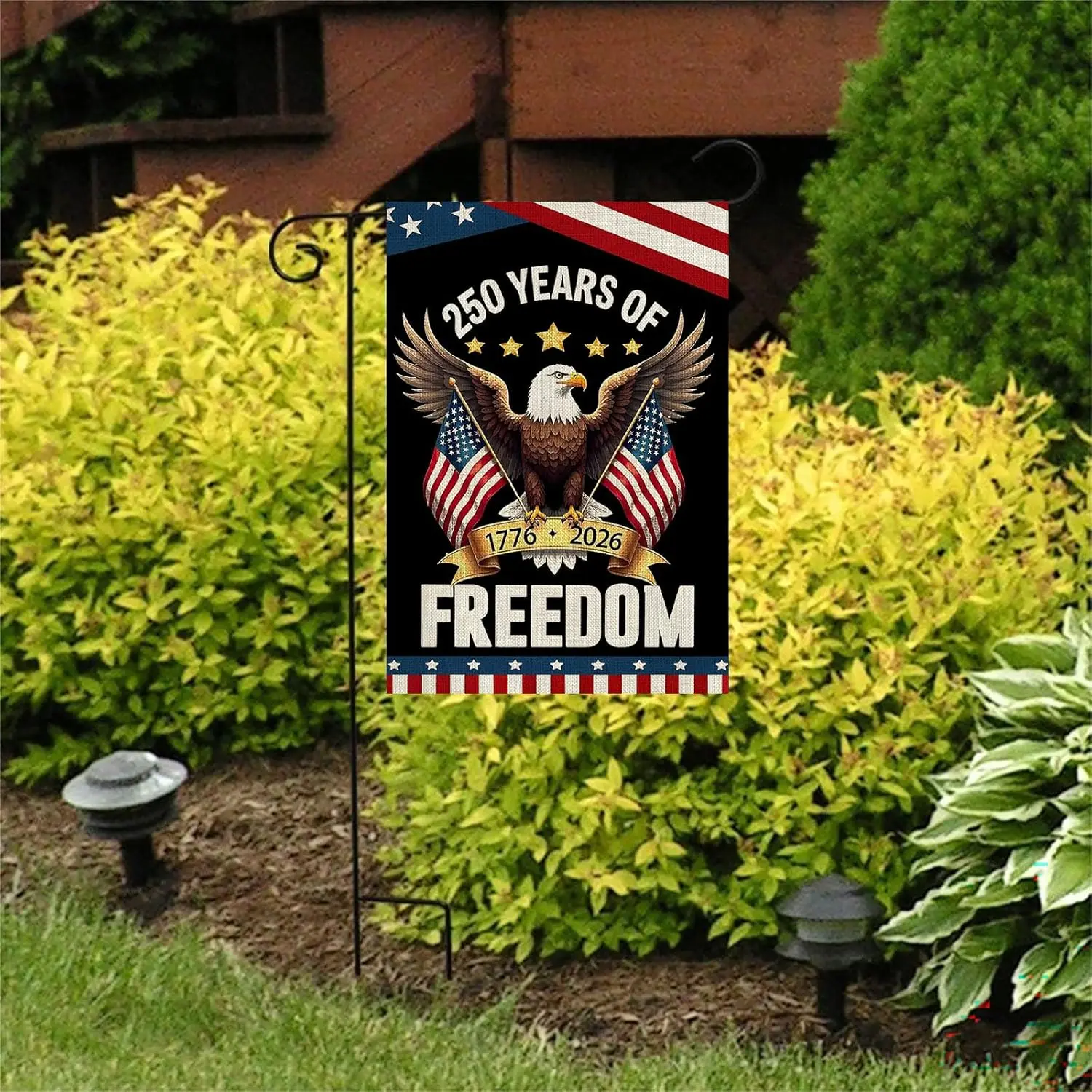 ·VERSATILE DISPLAY: This patriotic garden flag is perfect for year-round patriotic display, including 4th of July decorations, Memorial Day, Veterans Day, Independence Day, and the 250th anniversary of America.