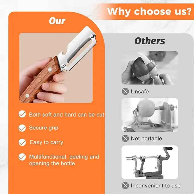 This versatile kitchen tool combines a vegetable peeler and a bottle opener in one, making it ideal for home cooking, travel, camping, and daily pantry use. The integrated bottle opener boosts practicality and brings extra convenience to your everyday life.