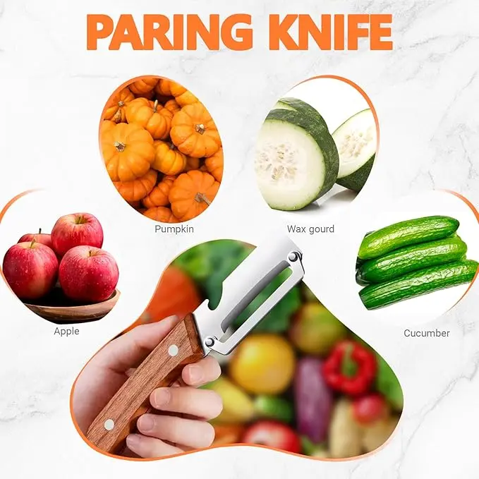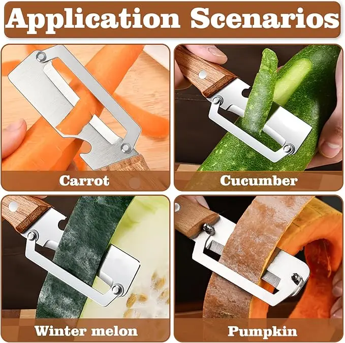 Designed with a sturdy wooden handle, this peeler offers a comfortable, non-slip grip. The ergonomic shape reduces hand fatigue during long peeling sessions, making it easy to handle large quantities of fruits and vegetables.