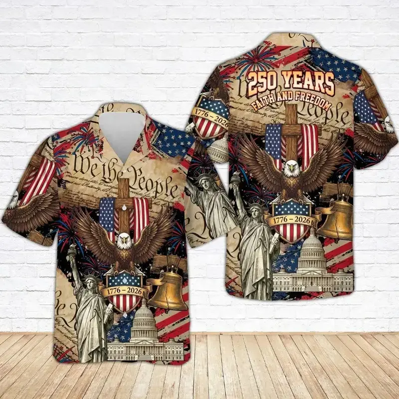 USA 250th Anniversary Hawaiian Shirt, America 250 Button Shirt, Patriotic Eagle, Statue Of Liberty, 250 Years Of Freedom and Faith Gift