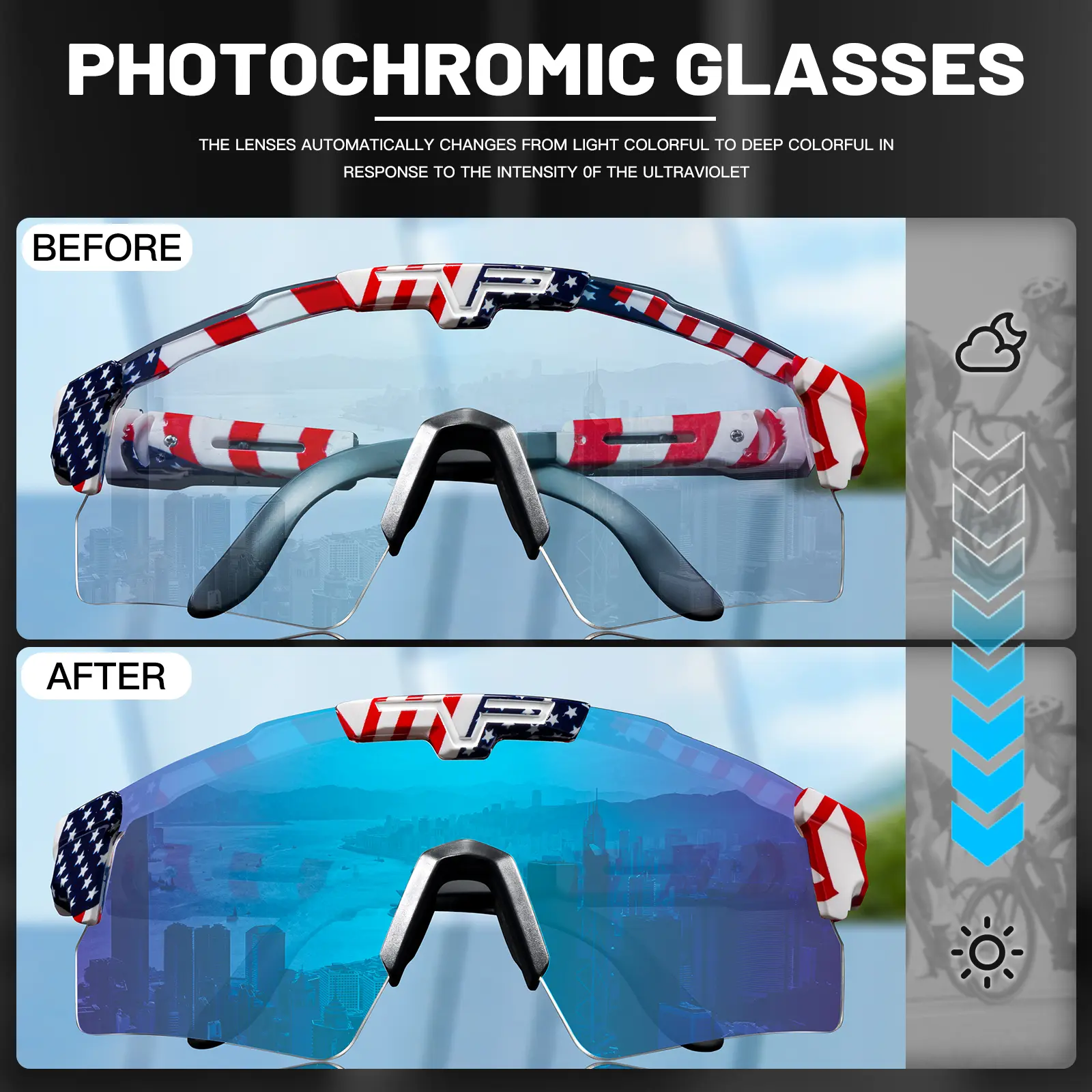 KAPVOE Photochromic Cycling Glasses Sports Sunglasses Mountain Bike Gasses Clear MTB Glasses Men Women Bicycle Riding Glasses