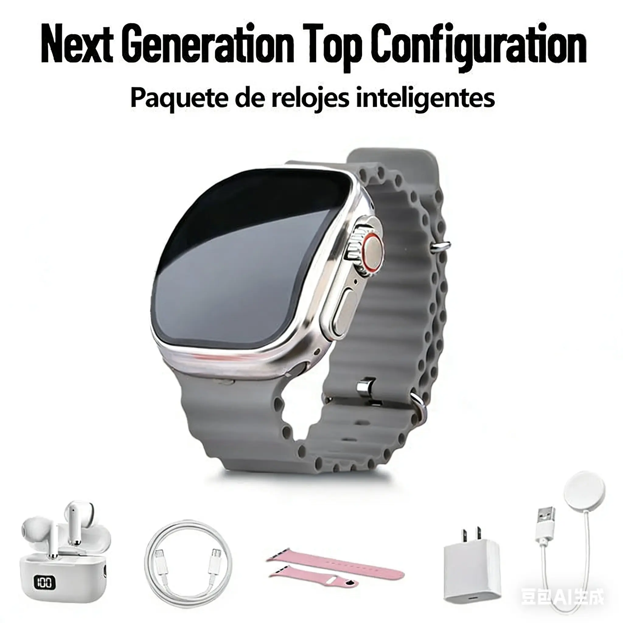 Smart Watch Set: Includes a smart watch, Bluetooth earphones, a 20W fast charger, and a Type-C fast charging data cable.