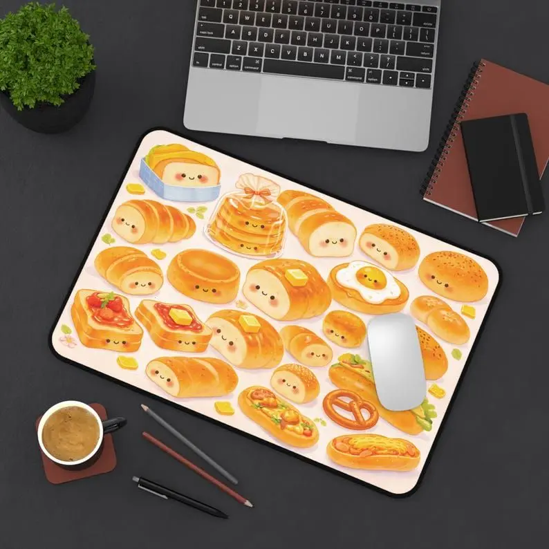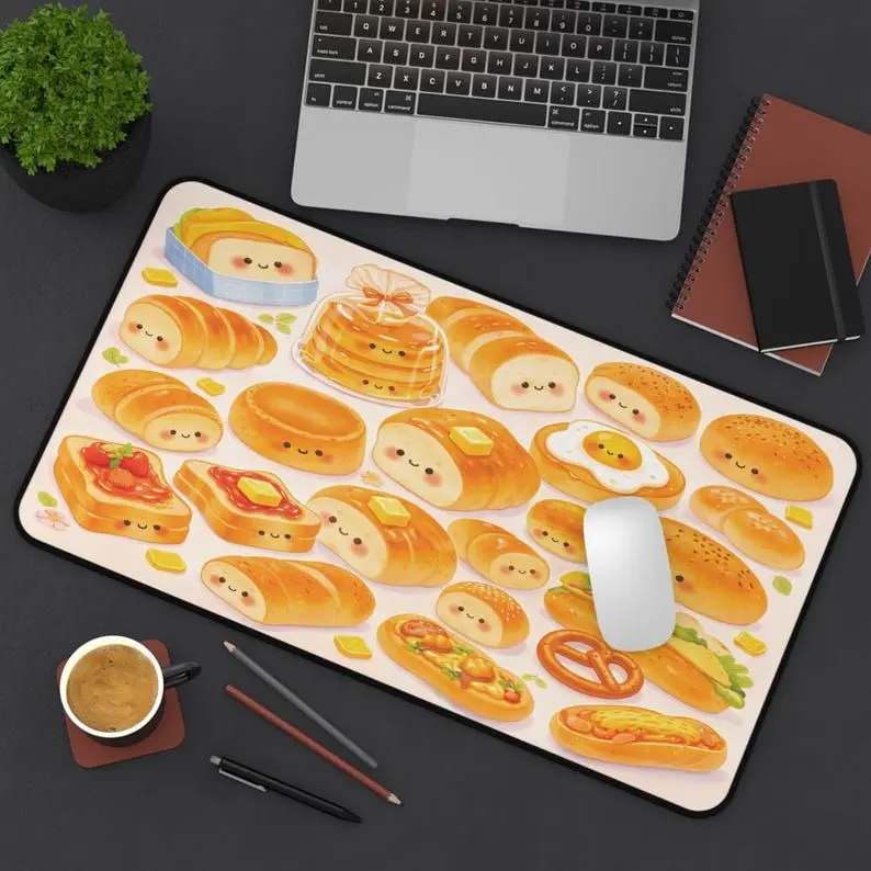 [SALE UP TO 50% + FREE SHIP] Kawaii Bread Desk Mat, Cute Bakery Desk Pad, Adorable Toast & Pastry Mouse Pad, Pastel Food Desk Mat, Cozy Workspace Decor