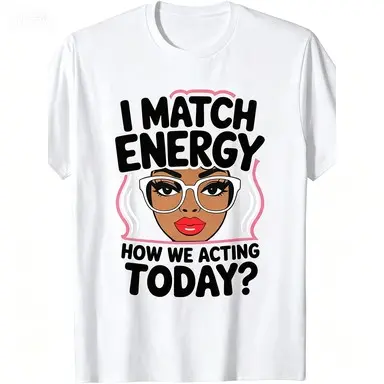 Express Your Unique Style With Our Plus Size I Match Energy Sarcastic Funny Vibes T Shirt For Women Featuring Round Neck Black Design Easy To Wash Perfect Gift