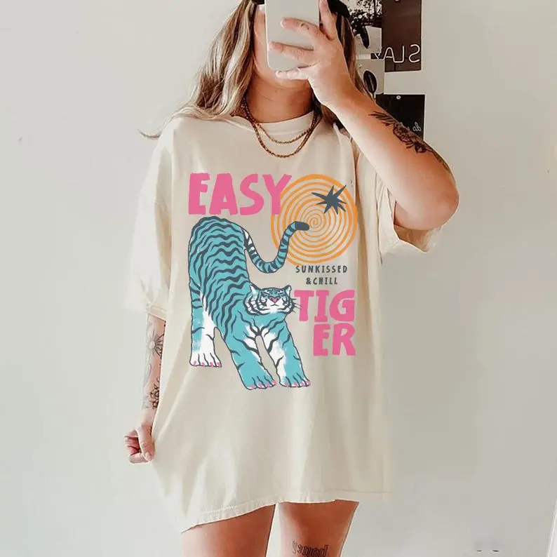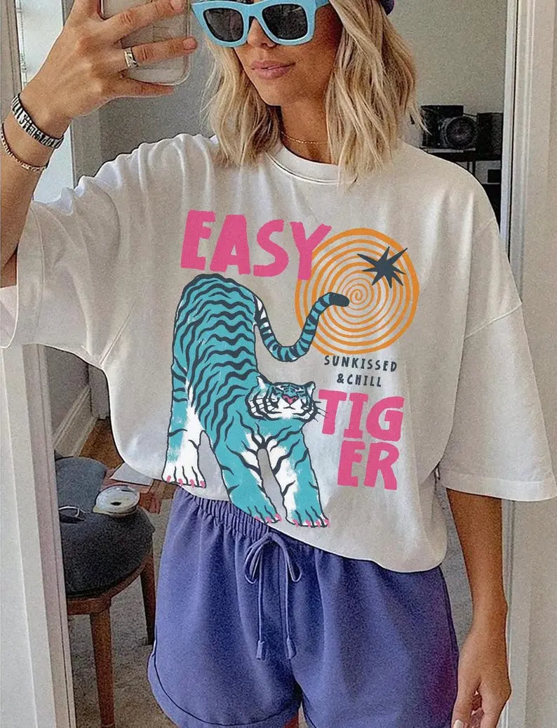 Sun-Kissed Tiger UNISEX Tshirt, Retro Tiger Graphic Tee, Summer Boho Beach Vibe Tee