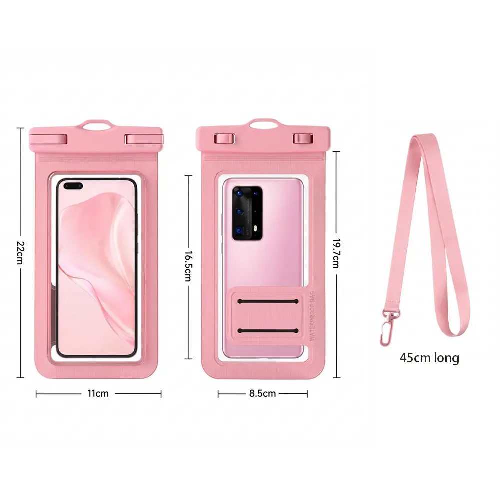 Included: 2Pcs Waterproof Cases (Black + Pink), 2Pcs Neck Lanyards.