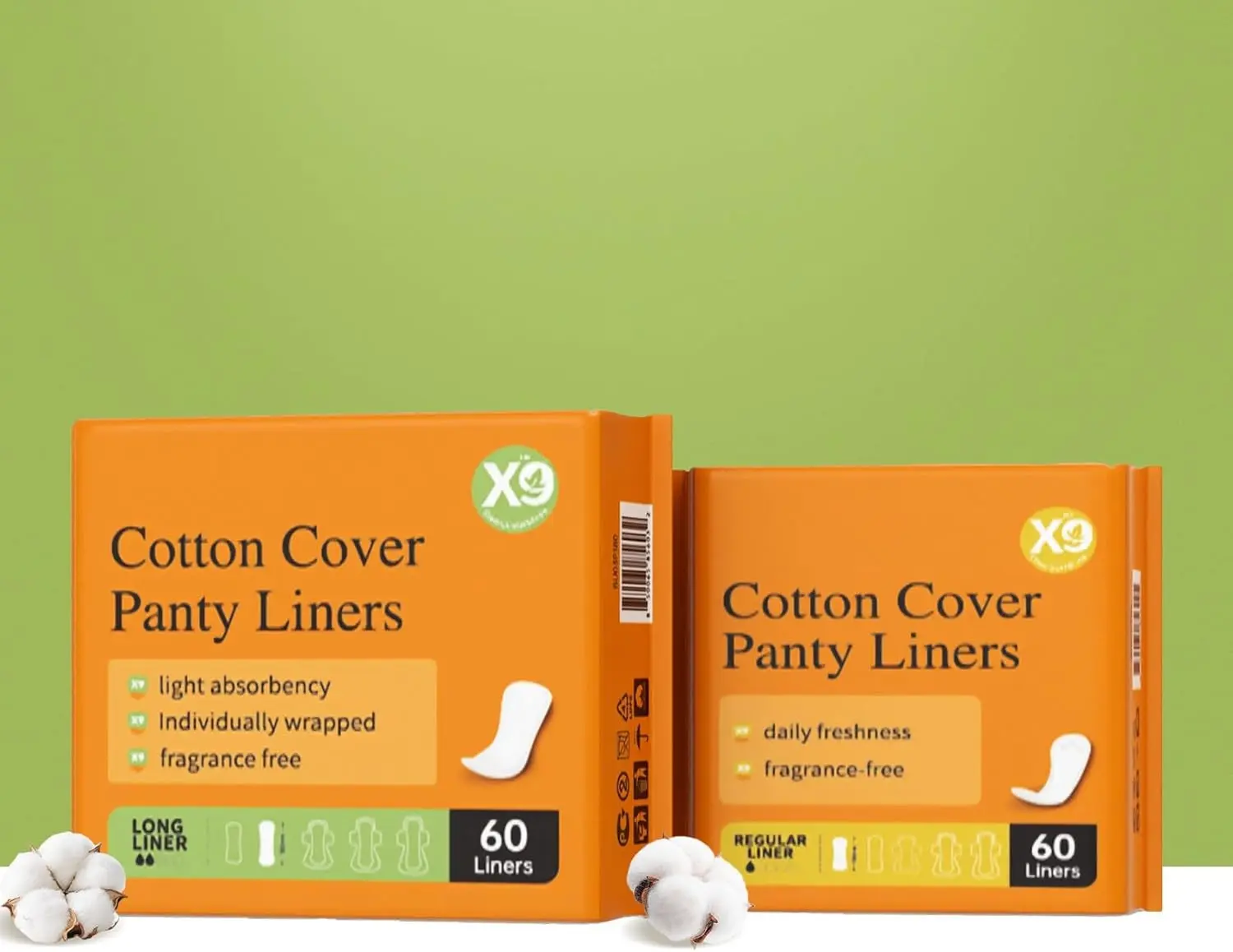 5. X9 Cotton Cover Panty Liners for Women, Fragrance Free Individually Wrapped Daily Pantiliners, Light Absorbency Breathable Feminine Care Liners, Regular & Long Size Options, 60 Count