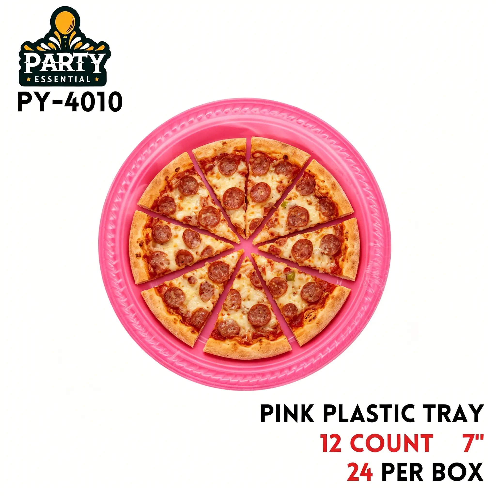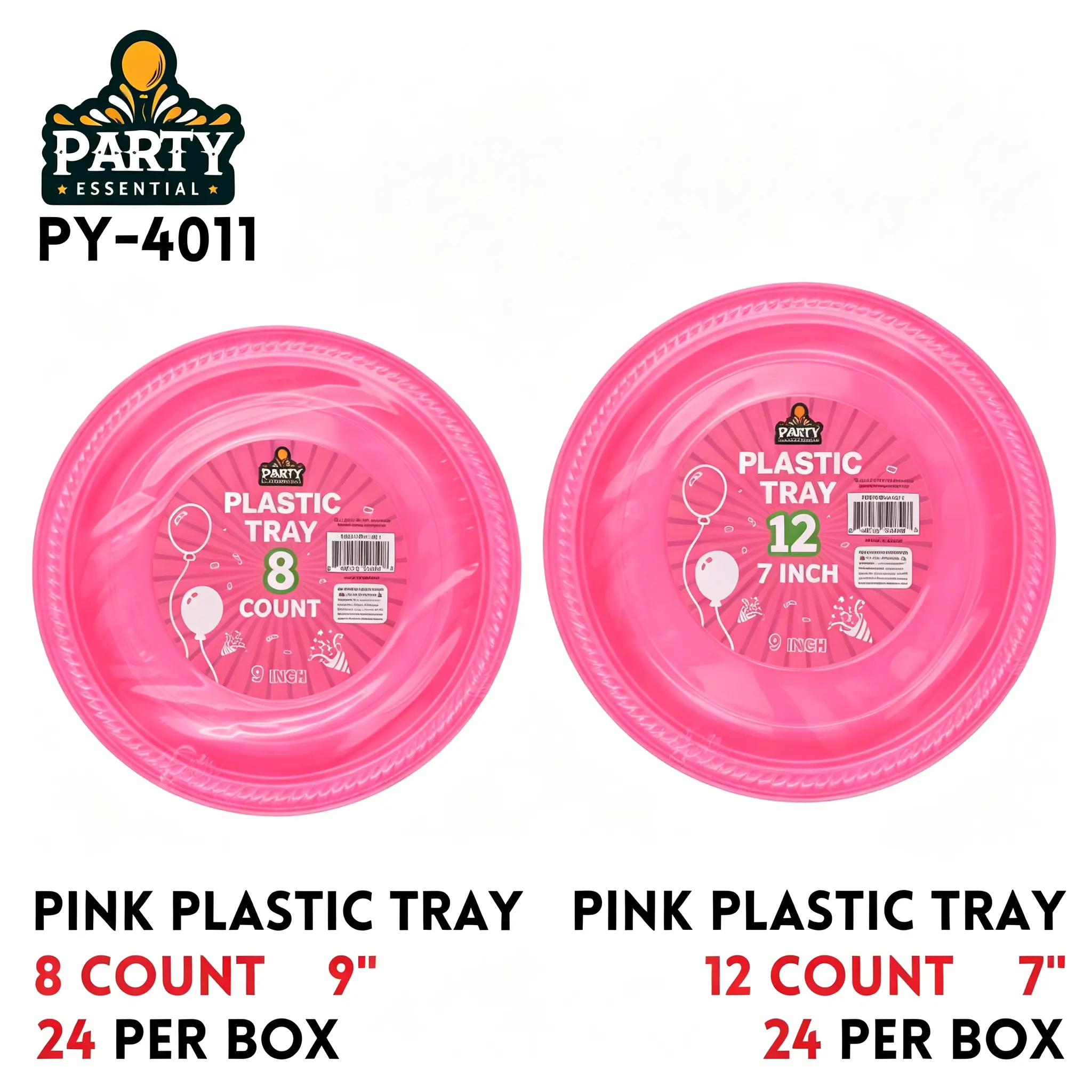 Bright pink plastic trays add a fun festive touch to any occasion. The 9-inch size is great for full servings, while the 7-inch is ideal for small portions and portion control. Lightweight and easy to handle, they reduce cleanup hassle and save time. Stackable design makes storage simple, perfect for home and event use.